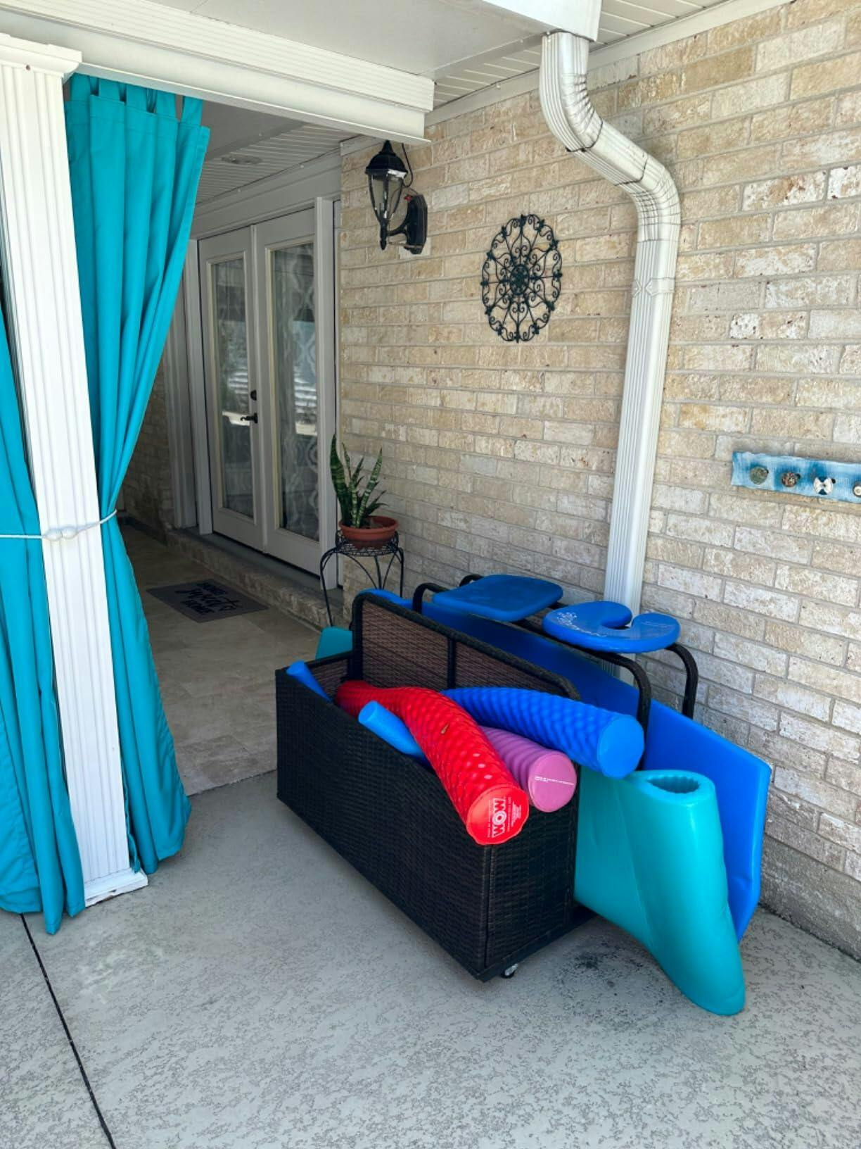 - Enhance your Outdoor Storage, a perfect combination of style and functionality. Crafted with quality materials, this storage box offers a chic solution for organizing your poolside items.