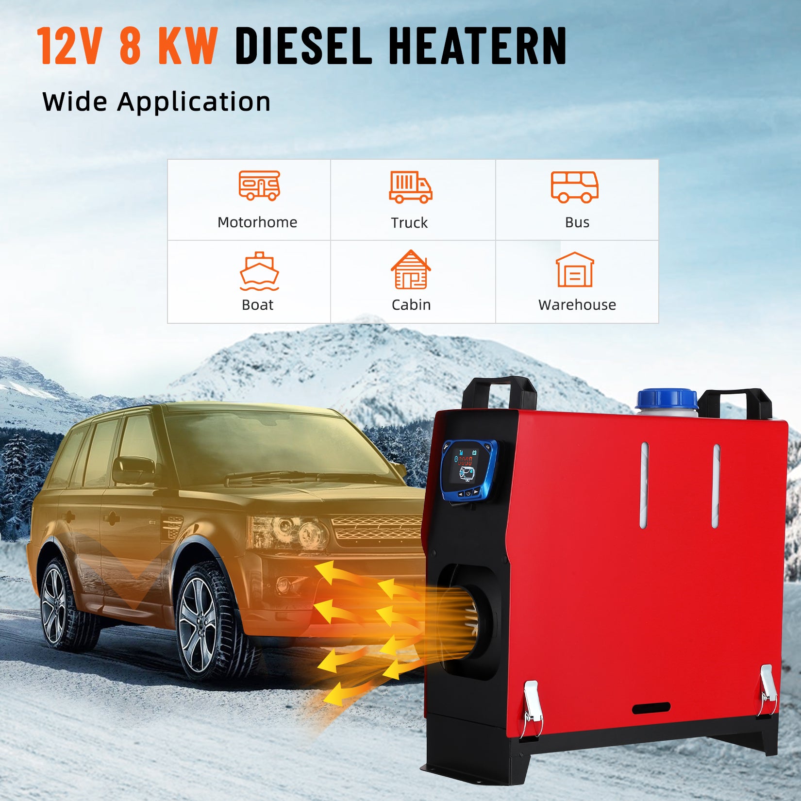 Garvee 8KW 12V All-in-One Diesel Air Heater - Portable Heater with Remote Control & LCD Monitor, Quick Heating for Car, RV, Truck, Camper, and Trailer (Red)