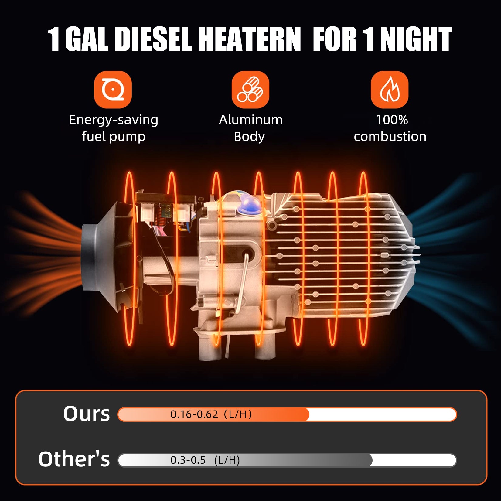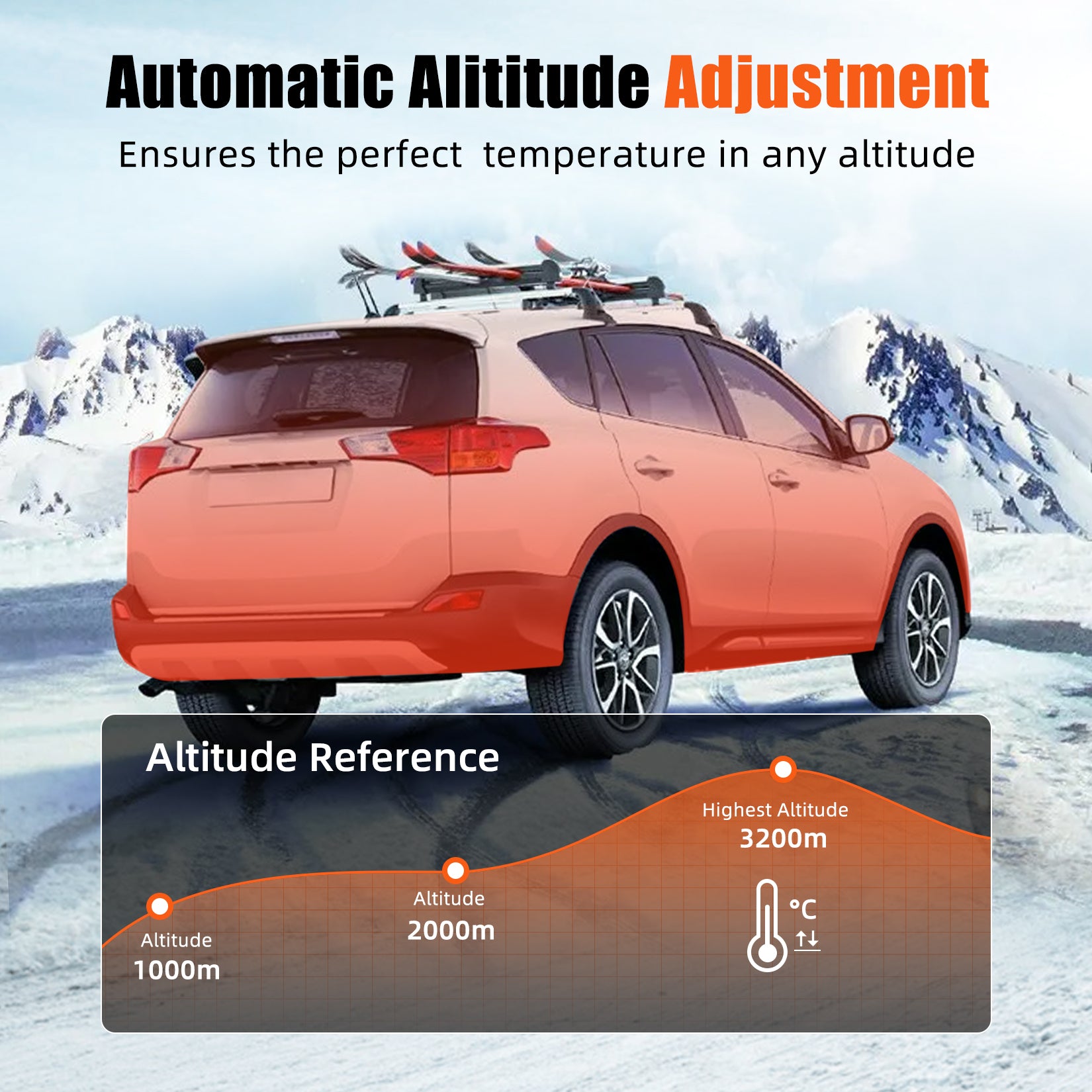 Whether you're at high altitudes or facing freezing temperatures, the GARVEE Diesel Air Heater has you covered. Designed to operate smoothly at altitudes up to 9843 feet and in temperatures as low as -40°F, this heater ensures you stay warm wherever your adventures take you.