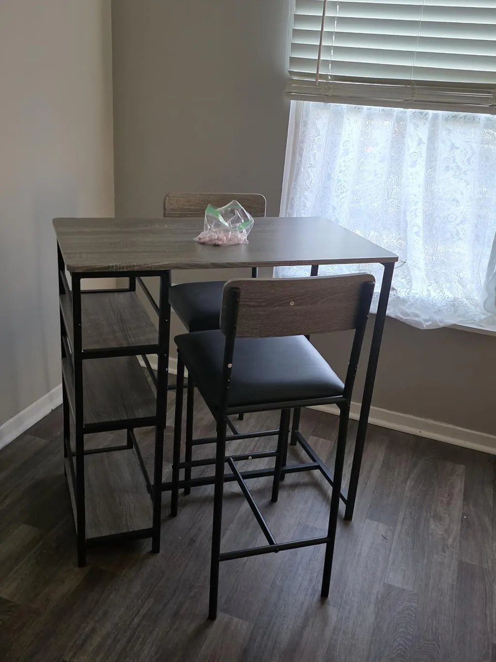 - Rustic gray finish to complement various decors