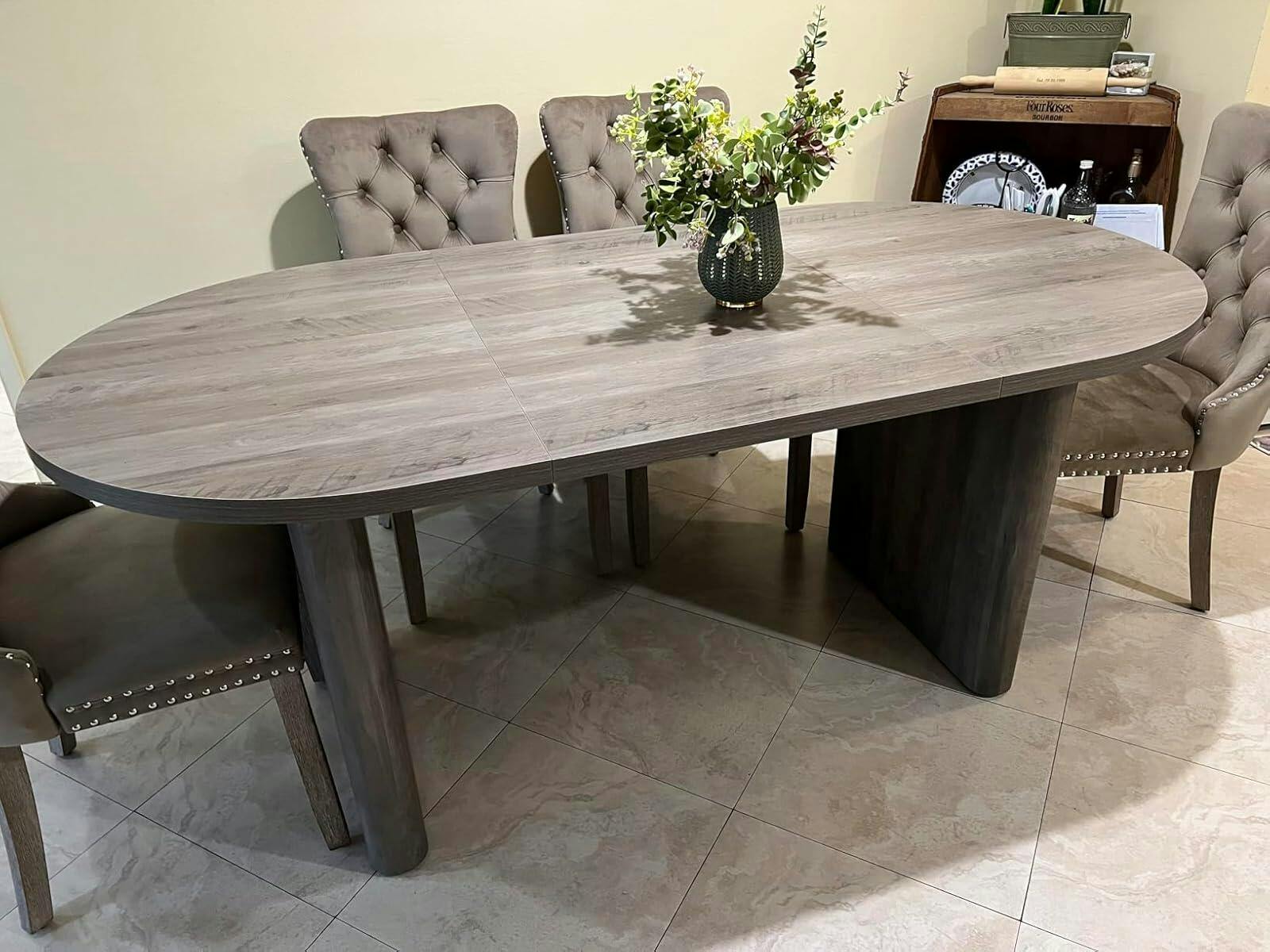 - Striking Modern Design: This generously sized table combines a sturdy metal base with wooden strips and refined oval design, elegantly fitting kitchens or living rooms for daily use or hosting.