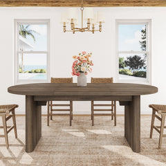 Garvee 70.8" Modern Oval Wood Dining Table with Wood Strip Base for 6-8 People, Natural