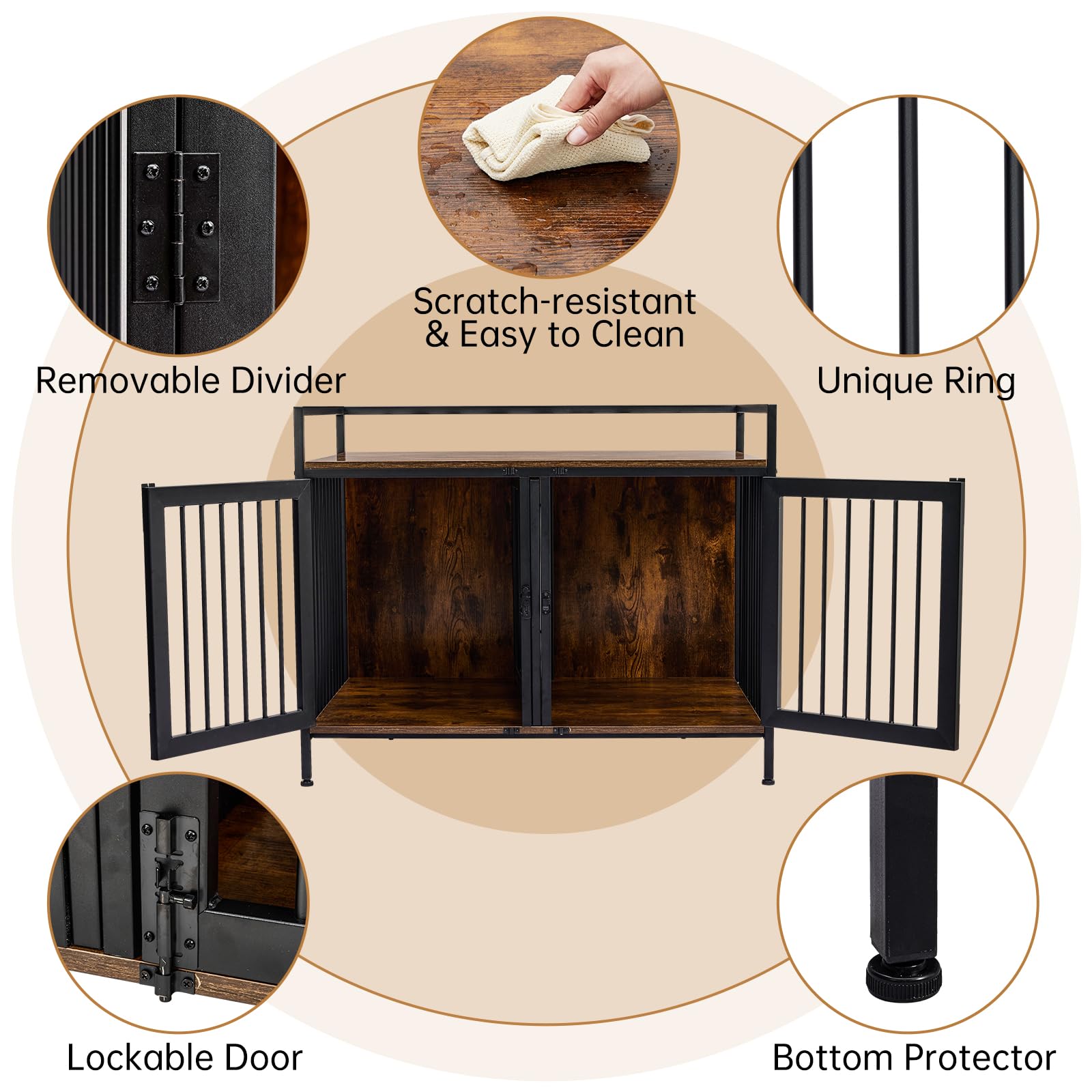 With its fashionable furniture-style design and robust construction, this crate offers both style and substance. The rustic brown finish adds warmth to any room while providing a safe, comfortable space for your pets.