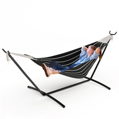 The water-resistant hammock is crafted with premium, colorfast 100% cotton fabric. This fabric is highly breathable, making it comfortable for you to relax in. Its beautiful color adds a touch of elegance to your outdoor space.