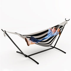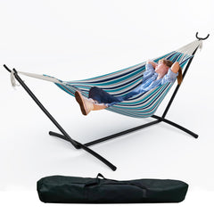 Garvee Ocean Color 450 Lbs Double Hammock with Space-Saving Steel Stand for 2 Person - Portable, Indoor Outdoor Use, Carry Bag Included - Perfect for Garden, Camping, Beach