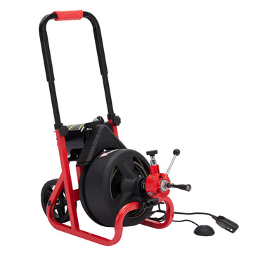 GARVEE Electric Drain Cleaner is a professional solution for harsh main drain and sewer line cleaning jobs. Compared to traditional snakes, equipped with sturdy construction, and high-quality solid cable with an auto-feed system, this drain auger is only designed to accomplish efficient and professional water line cleaning. Adjustable telescopic rods allow professionals to move it conveniently, and weight-bearing rollers allow direct access to stairs.