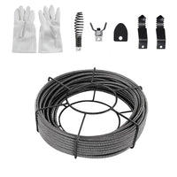 Garvee Drain Cleaning Cable 50 Feet x 1/2 Inch, Solid Core Cable Clog Pipe Drain Cleaning Cable With gloves and Cleaning Cutter Cutting Head Set for Drain Augers Set