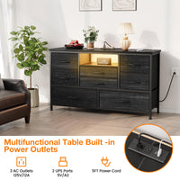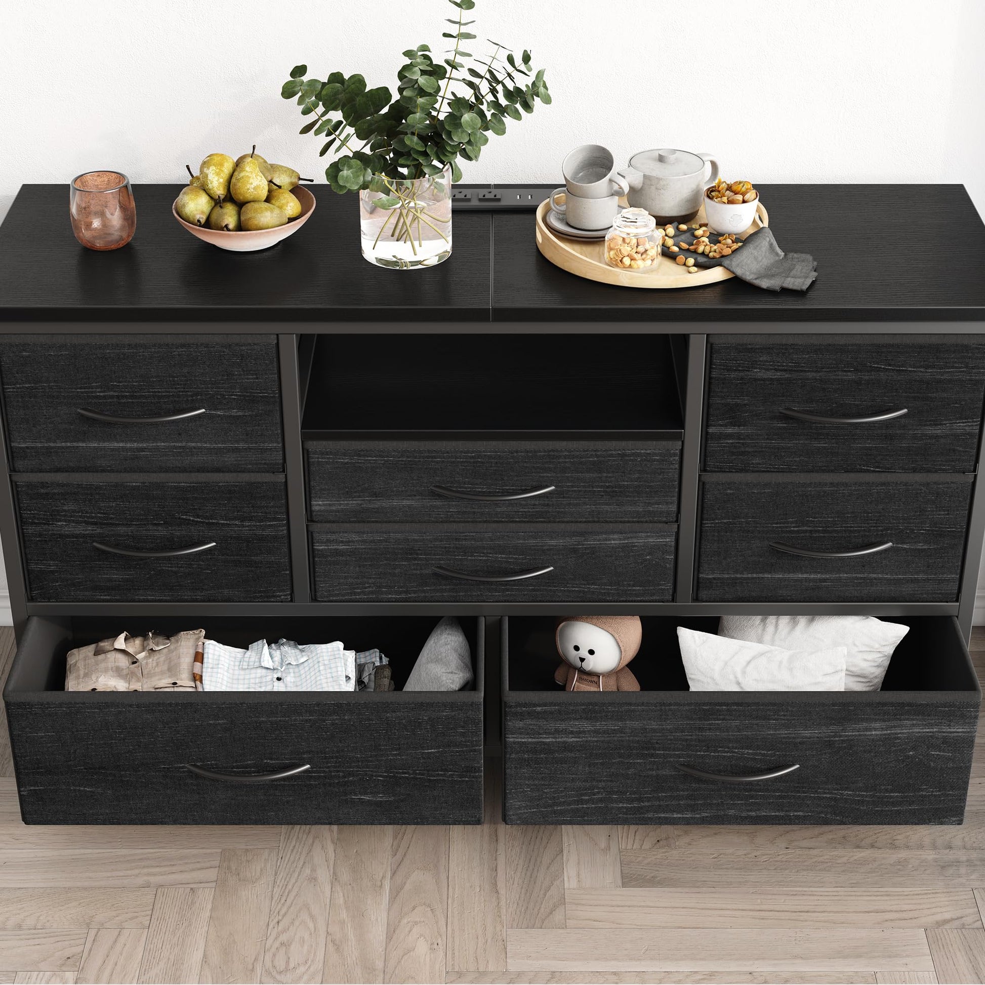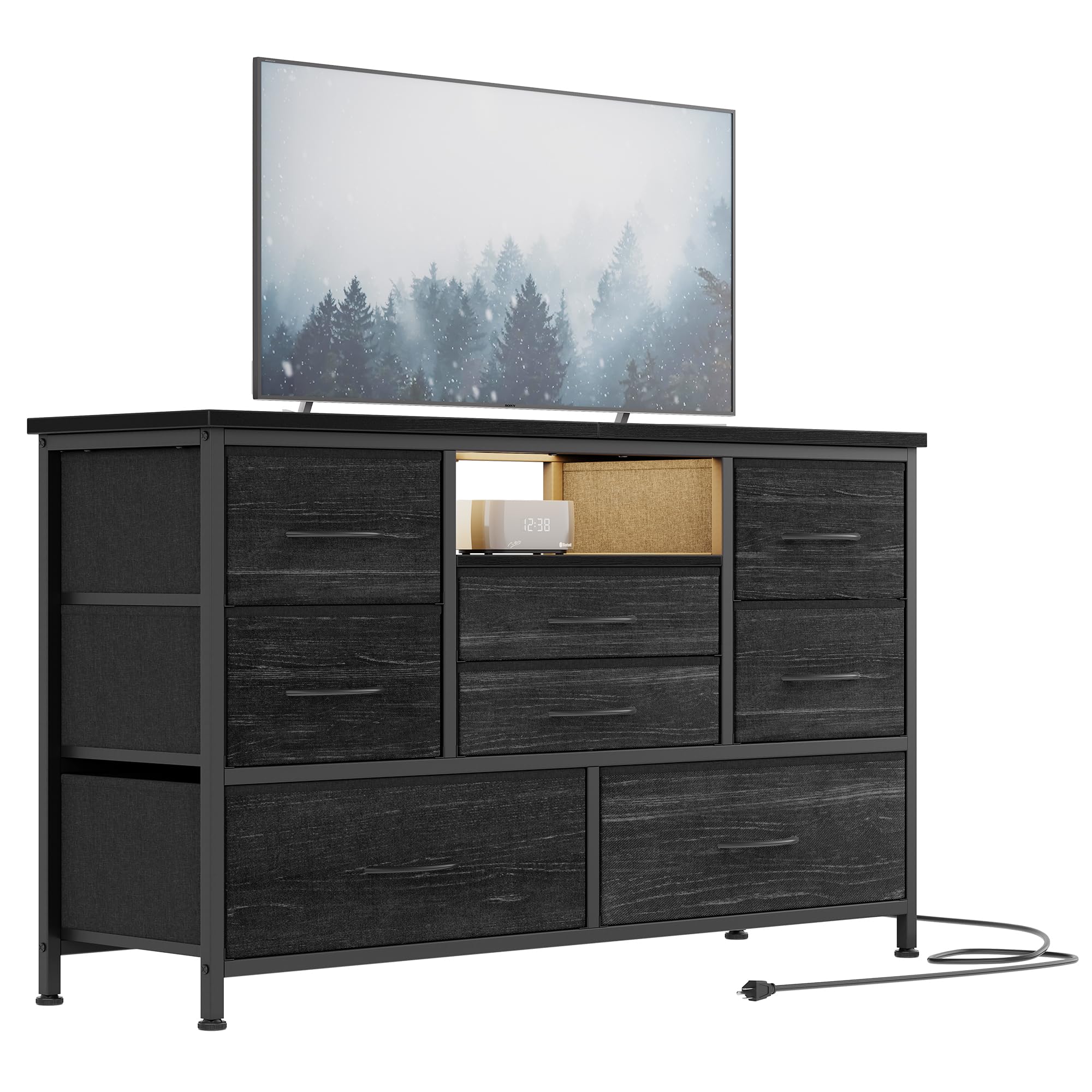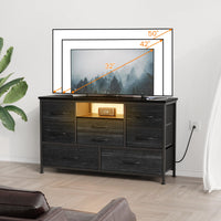 Garvee 8 Dresser TV Stand with Power Outlet & LED for 55'' TV, Long Dresser for Bedroom with 8 Deep Drawers, Wide Console Table for Storage in Closet, Living Room, Entryway, Wood Top - Charcoal Black