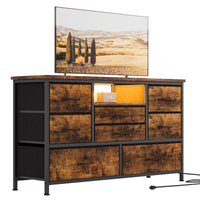 Garvee 8 Dresser TV Stand with LED & Power Outlet, Deep Drawers, MDF Board, Wood Top, for Bedroom & Living Room