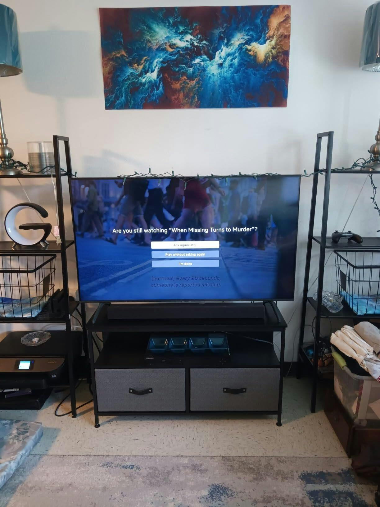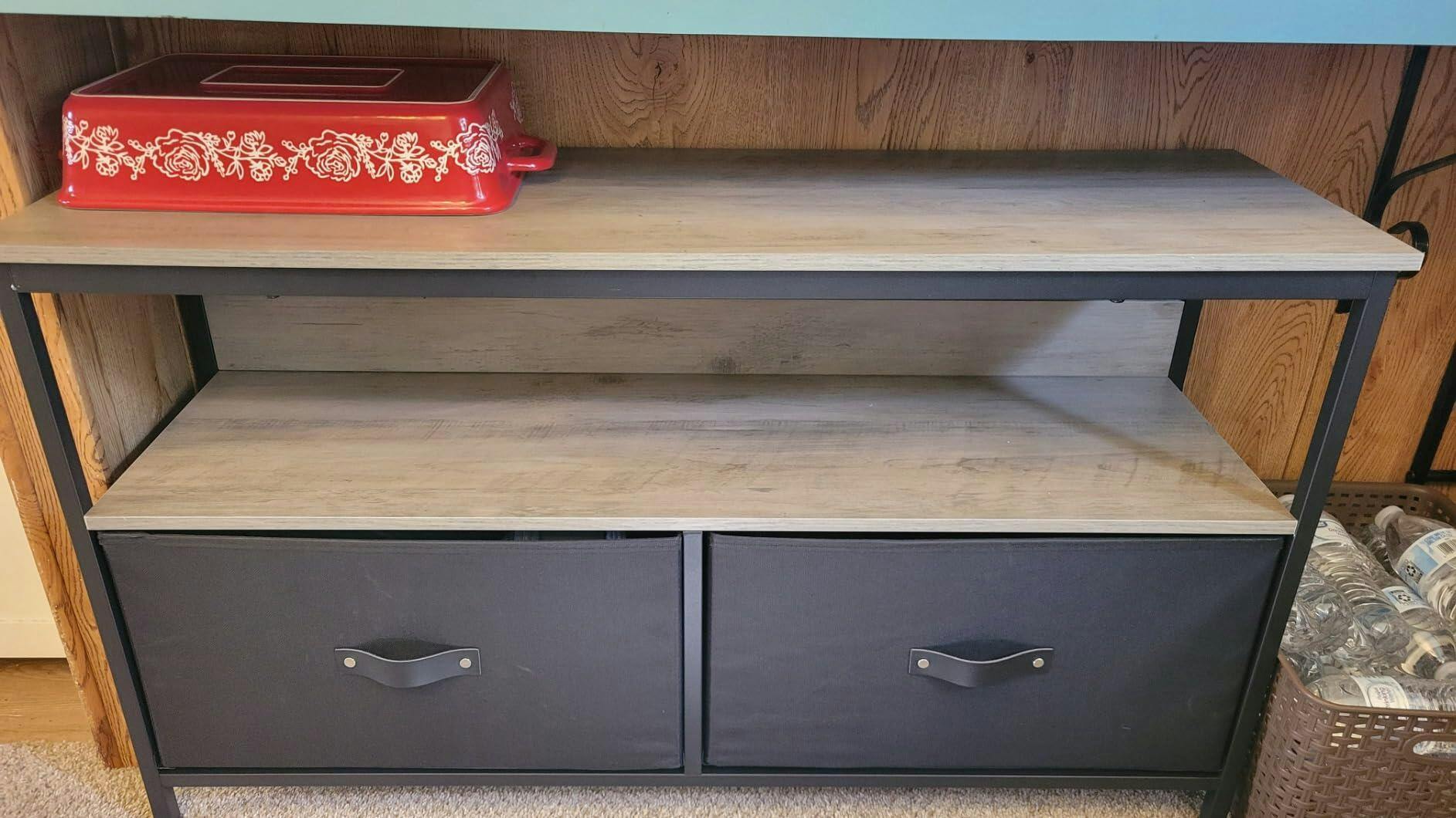 Features 2 fabric drawers and additional shelves, providing plenty of space to organize your entertainment essentials.
