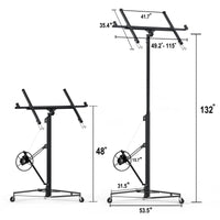 - Adjustable Telescopic Arm Drywall Lift:The drywall lift telescopic arm extends from 4 feet to 11 feet, accommodating 4' x 11' panels and providing robust support for various panels weighing up to 150 lbs. This feature simplifies installation, saving you time and effort. The drywall lift also allows for lowering panels to a height of 54 inches off the ground for easy loading, making ceiling and wall installations a breeze.