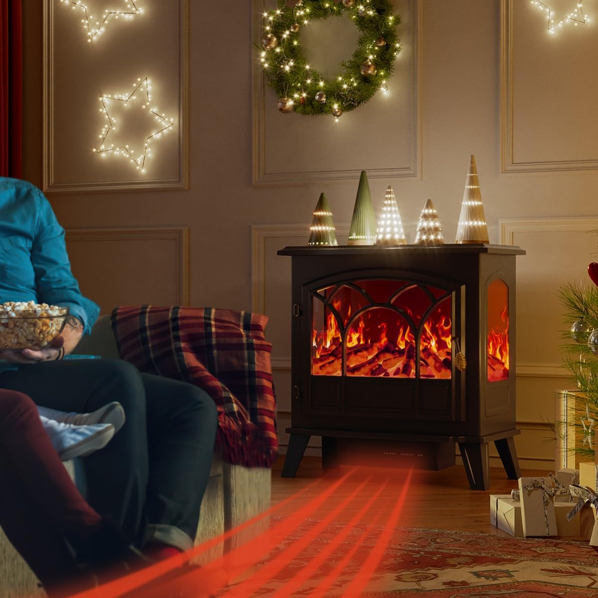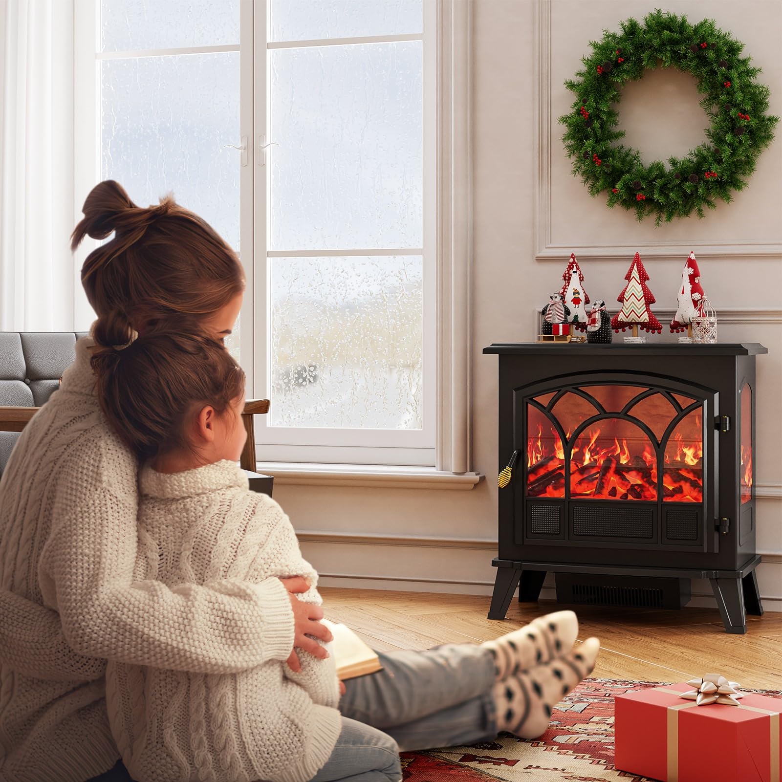 Add warmth and cosiness to your home with this realistic wood electric fireplace.