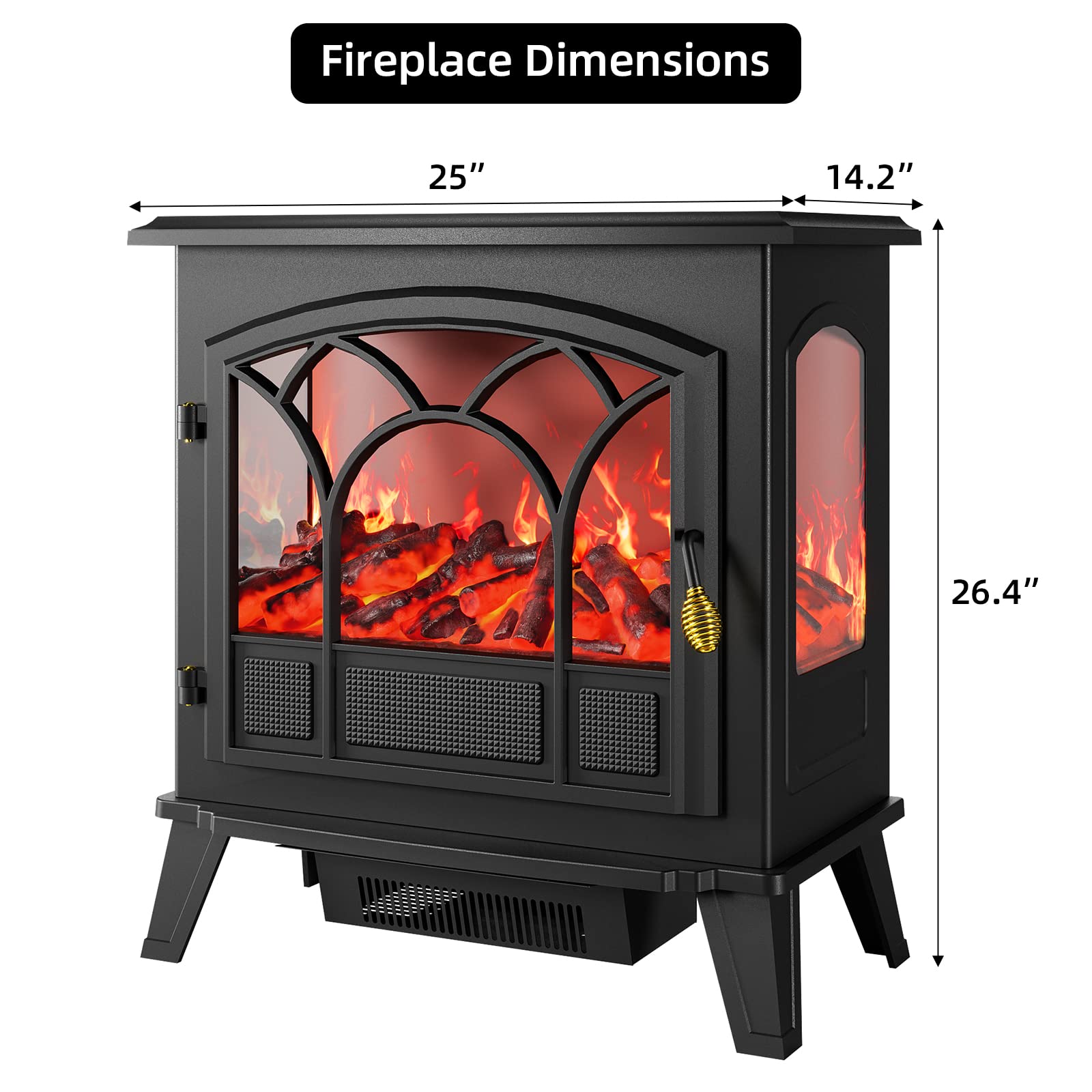 Garvee 26.4" Electric Heater, 750/1500W, Fireplace Design, Freestanding