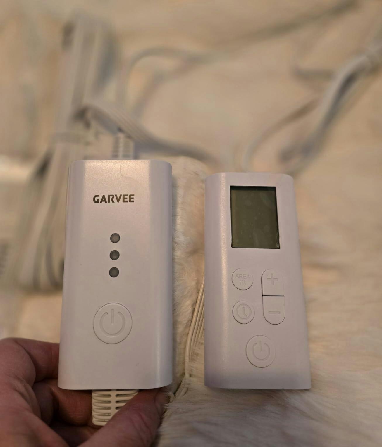 I'm really enjoying this GARVEE electric heated blanket. What sets it apart for me is the combination of a furry, cozy fabric on top and a smoother material on the underside. It’s also quite substantial in weight and thickness, even without the heating element turned on, so it already provides a nice layer of warmth. The generous 90 x 90 size covers my queen size bed and looks like a comforter.The standout feature is definitely the wireless remote. It makes adjusting the temperature and timer so much more convenient than reaching over to find the controller attached to the power cord. The display is clear and illuminated, it's simple to operate, and the batteries are included.From the remote, I can control both the left and right heating zones, perfect if you and your partner prefer different levels of warmth, set a timer for up to ten hours, and power the blanket on and off.It heats up quickly and maintains a consistent temperature throughout use.While the blanket is machine washable, it’s still new to me, so I can’t yet comment on how it holds up after laundering.Overall, I’m very happy with the quality of the fabric, the convenience of the wireless remote, and the reliable heating performance.