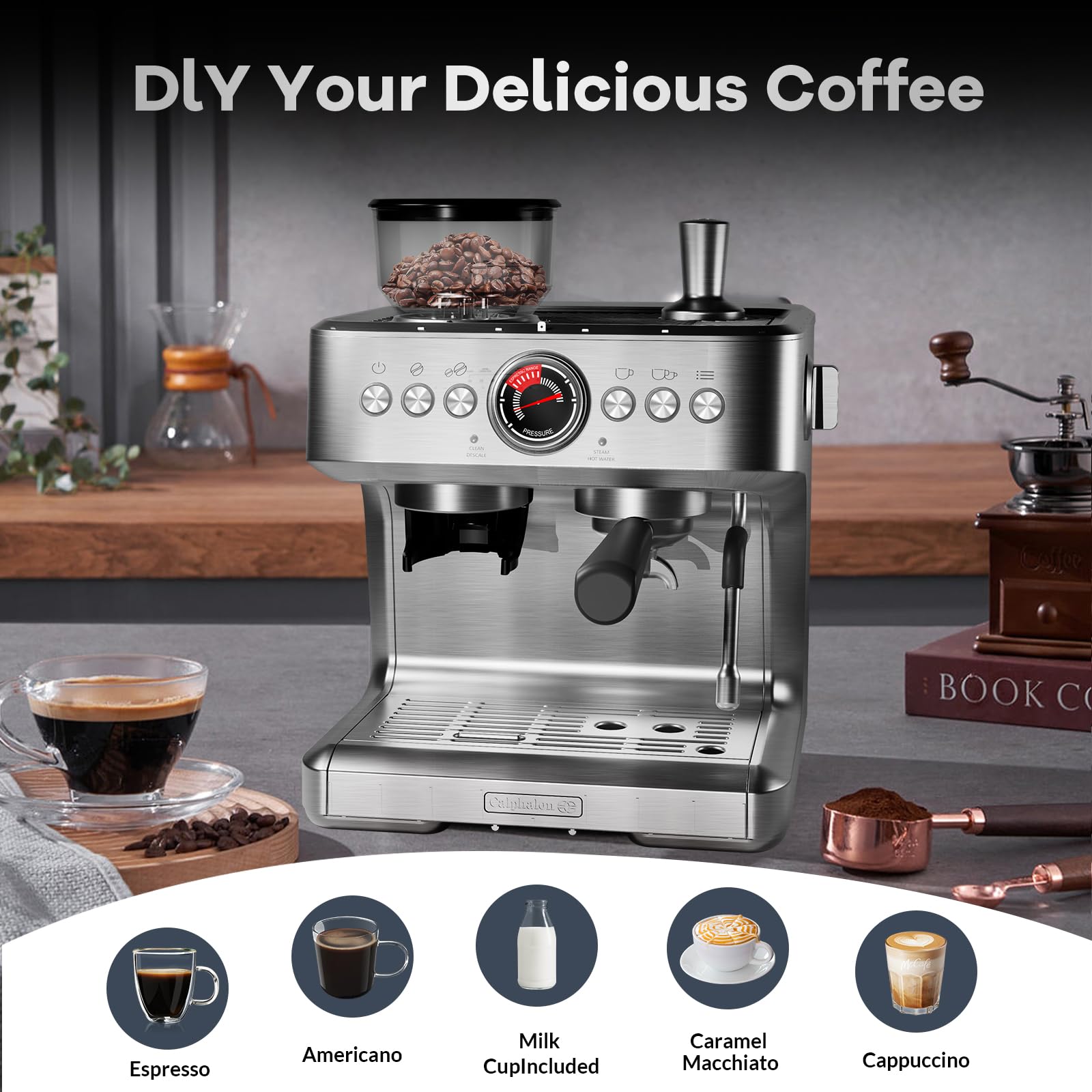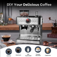 Garvee 20 Bar Espresso Machine - 1500W Motor, Built - In 30 - Setting Grinder, Milk Frothing, PID, 2.8L Tank