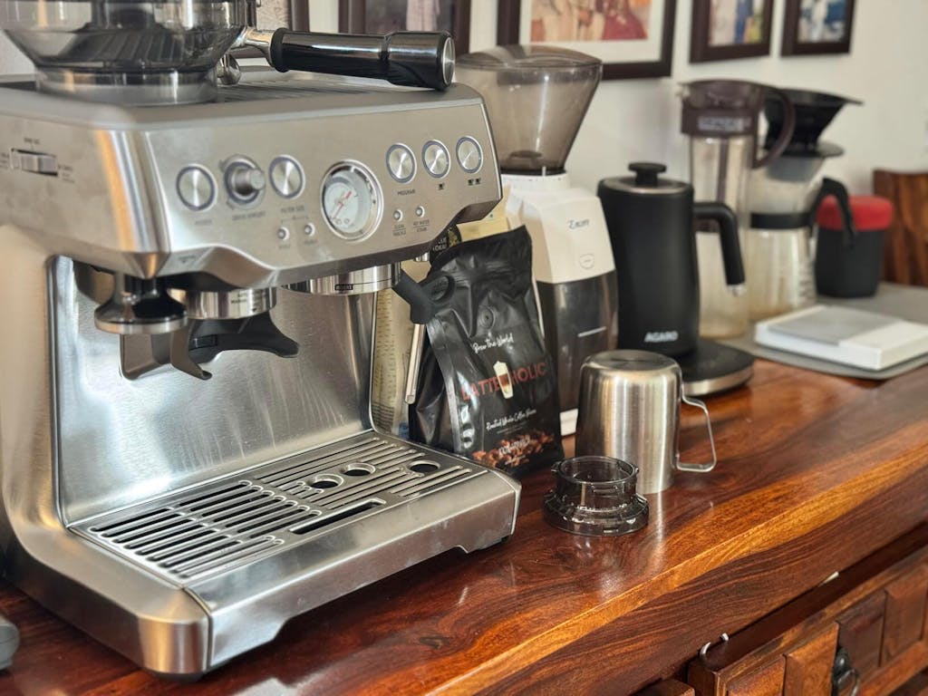 Choose your grind for espresso, pour-over, or French press. Grind straight into the portafilter for fresh coffee.