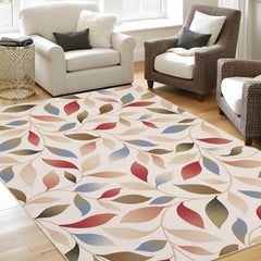 Garvee Extra Large Modern Area Rug 9'x12' Leaves Pattern Non Slip Non Shedding Throw Carpet Ultra Soft Foldable Botanical Floor Cover Low Pile Floral Throw Rug for Kids/Play Room, Red