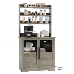 Garvee Farmhouse Bakers Rack with 2 Glass Doors, Power Outlet,Thickened Counter