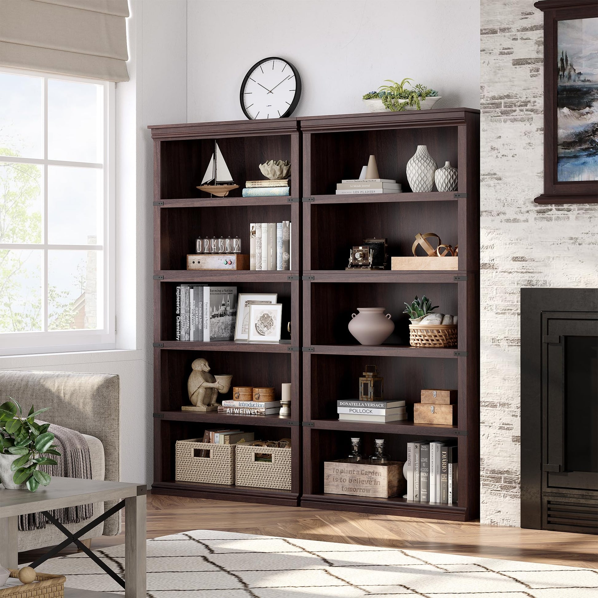 With its 71" tall frame, colonial molding, and ample storage space, the GARVEE 5 Tier Farmhouse Bookcase combines smart design with superior craftsmanship for a piece that's both functional and beautiful.