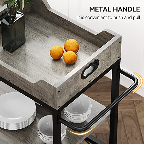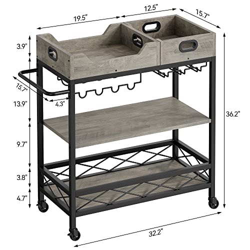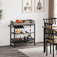 Garvee 3-Tier Rustic Bar Cart with Wheels, Wine Rack, Glass Holder, Removable Trays, Metal Frame, for Living Room, Dining Room, Kitchen