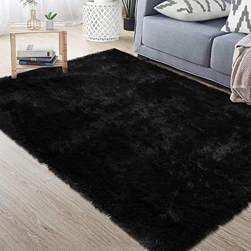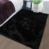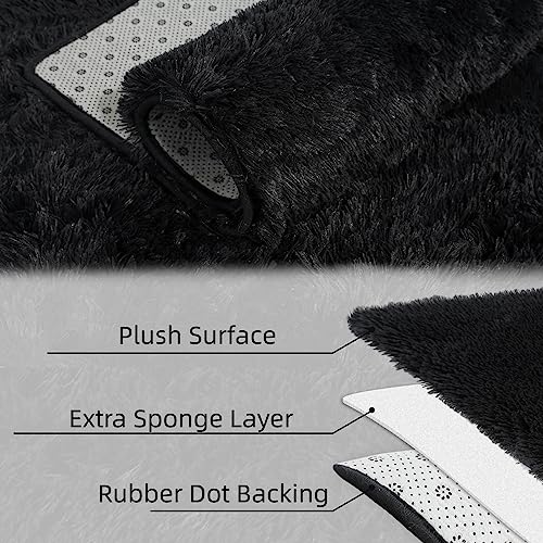 Garvee Fluffy & Sheepskin Pure Black 2.6x4.9 Shag Rug Plush Shaggy Rugs Soft Area Rug for Bedroom Fluffy Area Rug Non-Slip Furry Plush Rugs Modern Accent Rug for Indoor Bedroom Living Room, Black,80x150cm