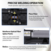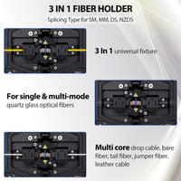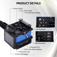 | Included Components | 1 set Fusion Splicer; 1 pc Cooling Tray; 1 pc Li Battery; 1 pair of Spare Electrodes; 1 pc Fiber Stripper; 1 set Fiber Cleaver; 1 pc AC Adaptor & Power Cord; 1 pc Carrying Case & User Manual |