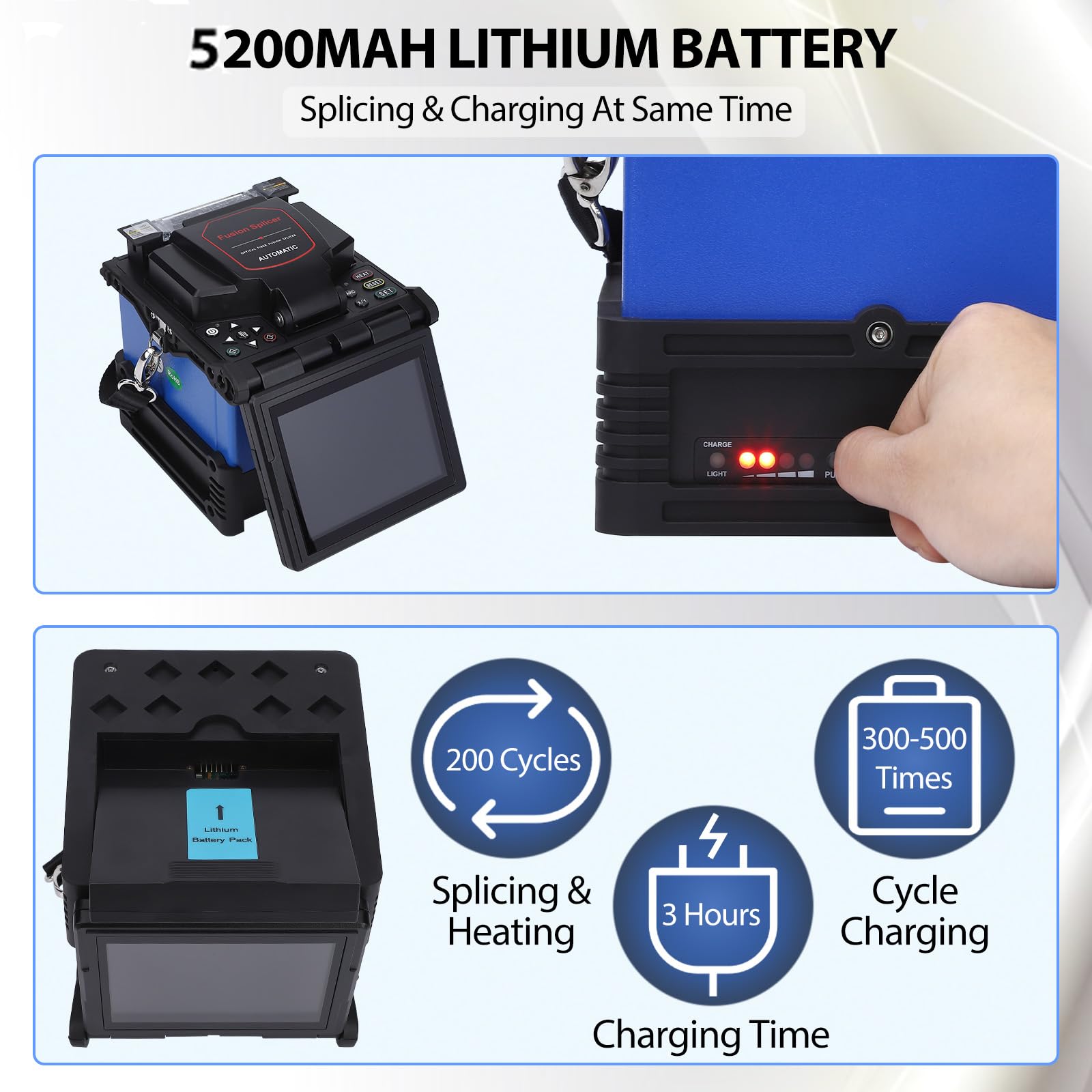 Powerful 5200mAh battery supporting up to 200 splice cycles on a single charge with quick 3-hour charging time.
