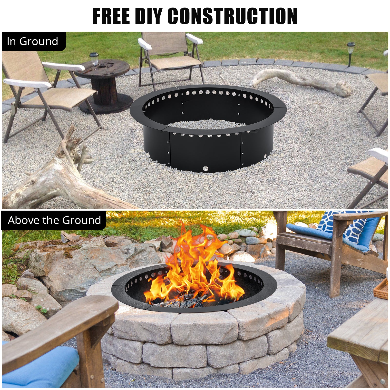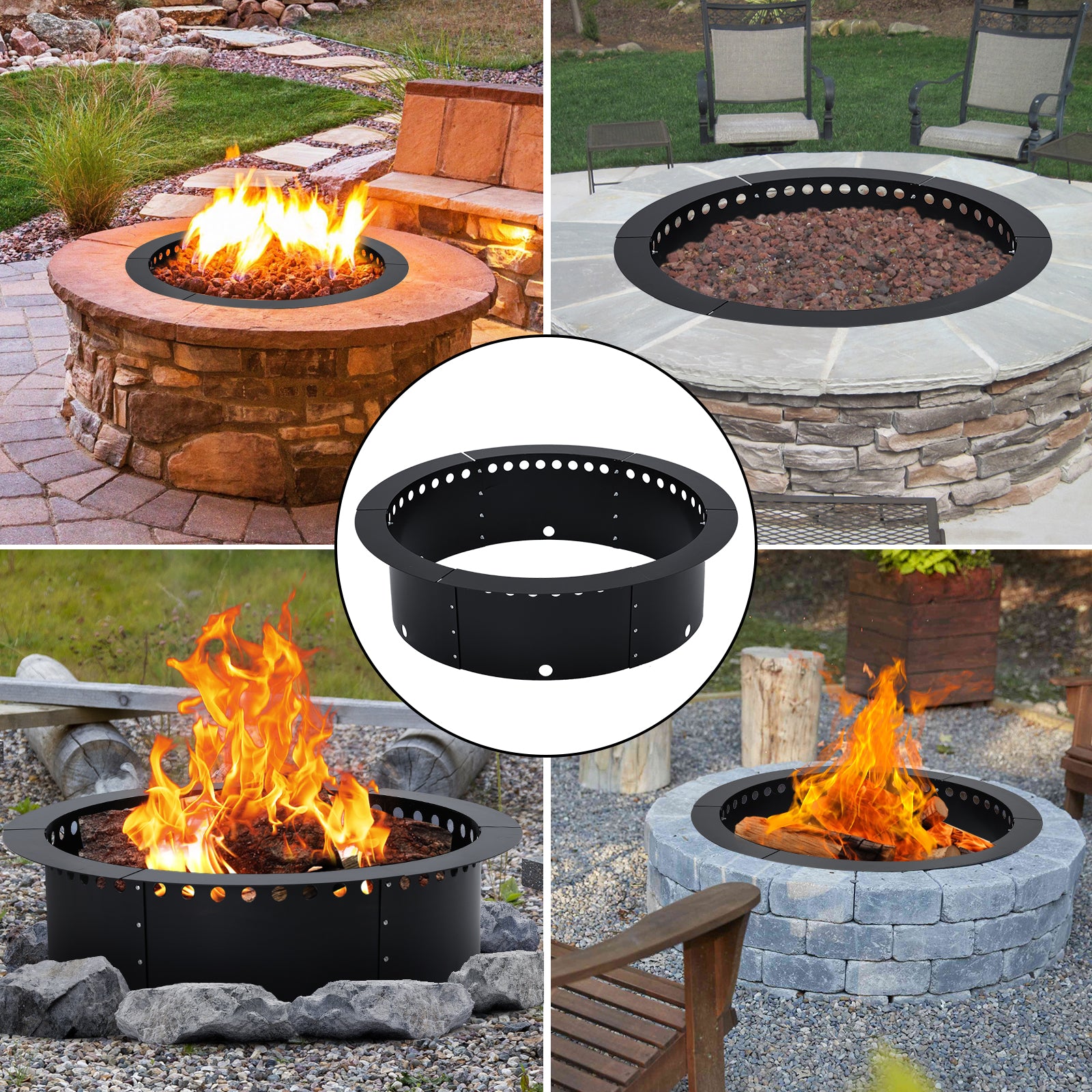 Garvee Fire Pit Ring Liner, 36 Inch Outer/30 inch Round Fire Pit Insert Liner, Rings Outside Wood Burning DIY Campfire Ring Above Ground or In-Ground for Outdoor