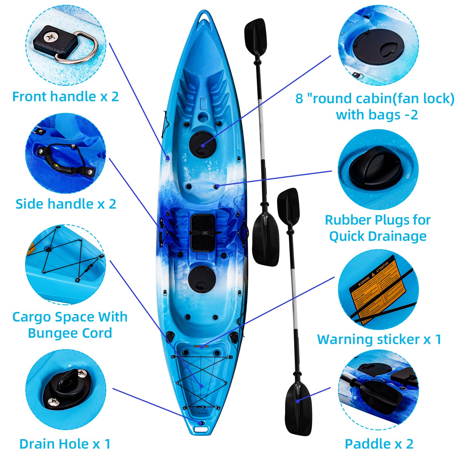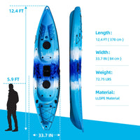 Garvee Fishing Kayak 12.4FT 2 Person Sit on Top with Paddle & Seat, 661LBS Capacity, Recreational Ocean Boat
