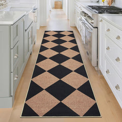 My wife ordered this GARVEE checkered rug for the mudroom, right by the back door where things get messy fast, especially with my two daughters, 11 and 13, running in and out. I figured it was going to be another disposable rug, but I'm giving it five stars because this thing is surprisingly well-made and easy to deal with.What I really like is the durability and the cleanup factor. It’s got that simple, manly black checkered pattern, and the jute texture gives it a solid, grounded look. It doesn't slide around thanks to the non-slip backing, which is critical. But the best feature, the one that makes it a great value for the money, is that it’s completely machine washable. We’ve already had mud, spills, and whatever else comes in on shoes and this rug handles it. I just toss it in the large capacity washer, and it comes out looking new. It looks sharp enough that it doesn't cheapen the room, but it's tough enough that I don't feel like I have to tiptoe around it.My only dislike is that when it first arrived, it had some pretty tight creases from being folded up for shipping. It took a couple of days and some heavy books laid across it to really flatten it out completely. It also doesn't feel like a soft, high-pile rug—it's definitely an easy rug, meaning it's flat and utilitarian. But since we bought it for function, not comfort, that's really just a note, not a true complaint. It's tough, looks good, and doesn't require any special treatment to clean, so it earns the top rating for being exactly what a practical indoor-outdoor rug should be.