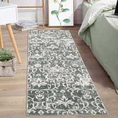 Garvee Floral Rug 8x10 Washable Rug Non Slip Area Rug Vintage Floor Cover Low Pile Carpet Foldable Area Rug Soft Carpet for Bedroom Living Room Office Nursery,Green