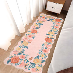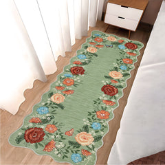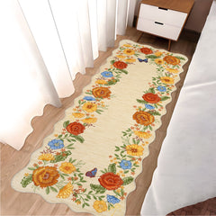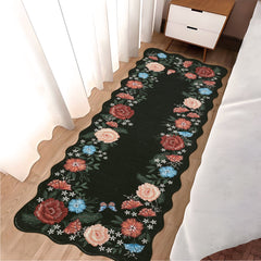 This floral rug with scalloped edges is an absolute gem! The jewel-toned floral design adds life and richness to my bedroom, especially placed over old, outdated carpet. It lays out beautifully with minimal wrinkles, and while the non-slip backing helps, it can still shift slightly on carpet—but nothing a rug pad can’t fix.What really makes this rug stand out are the scalloped edges—such a unique and textured detail that gives the piece an elevated, artistic feel. I also adore the subtle butterfly element, which brings a soft, feminine, almost majestic touch. The deep, vibrant colors are ideal for pet households or high-traffic areas, and it’s washable, which is a huge bonus.Affordable, eye-catching, and full of character—this rug makes it easy to bring bold, bohemian beauty into your space. I couldn’t be happier with it!
