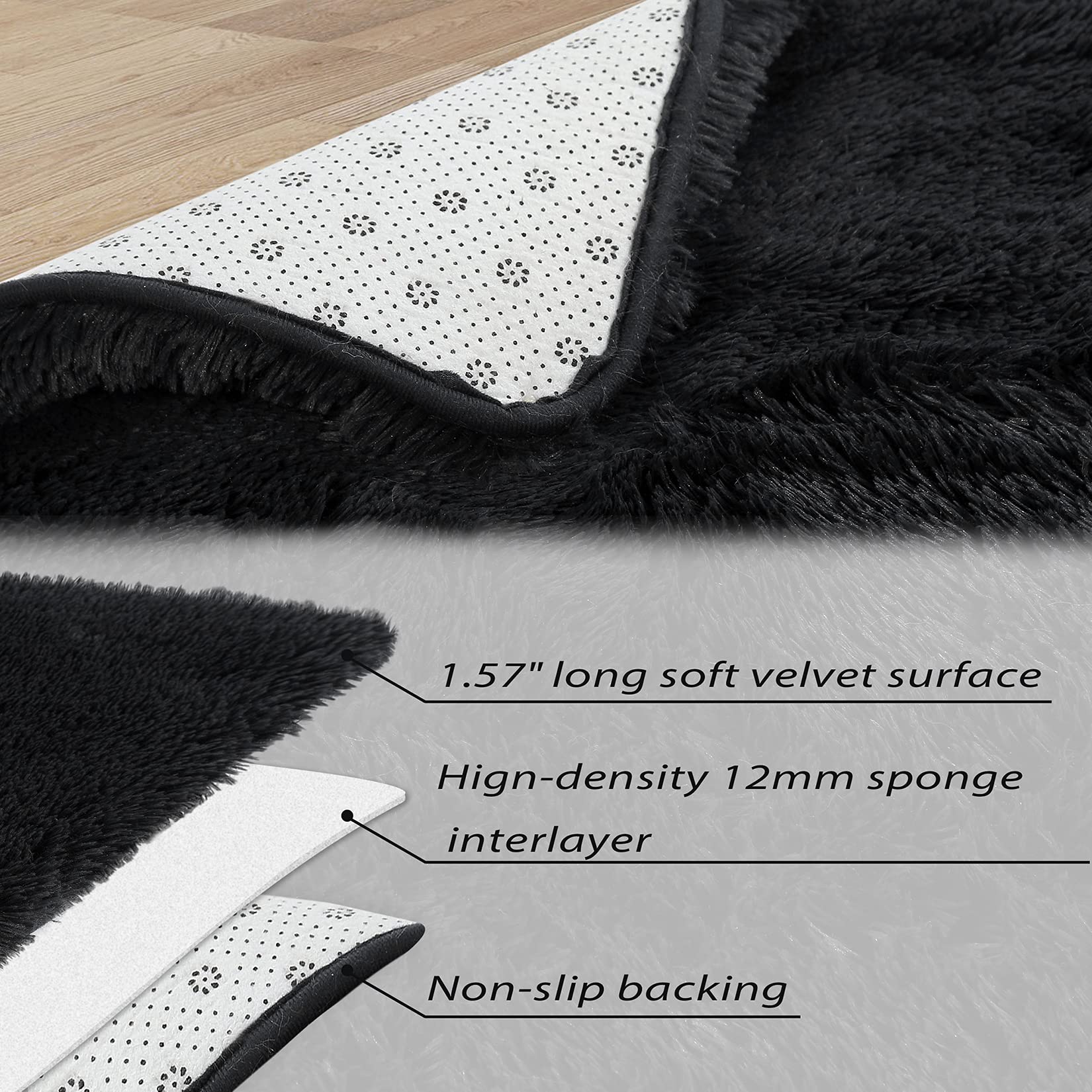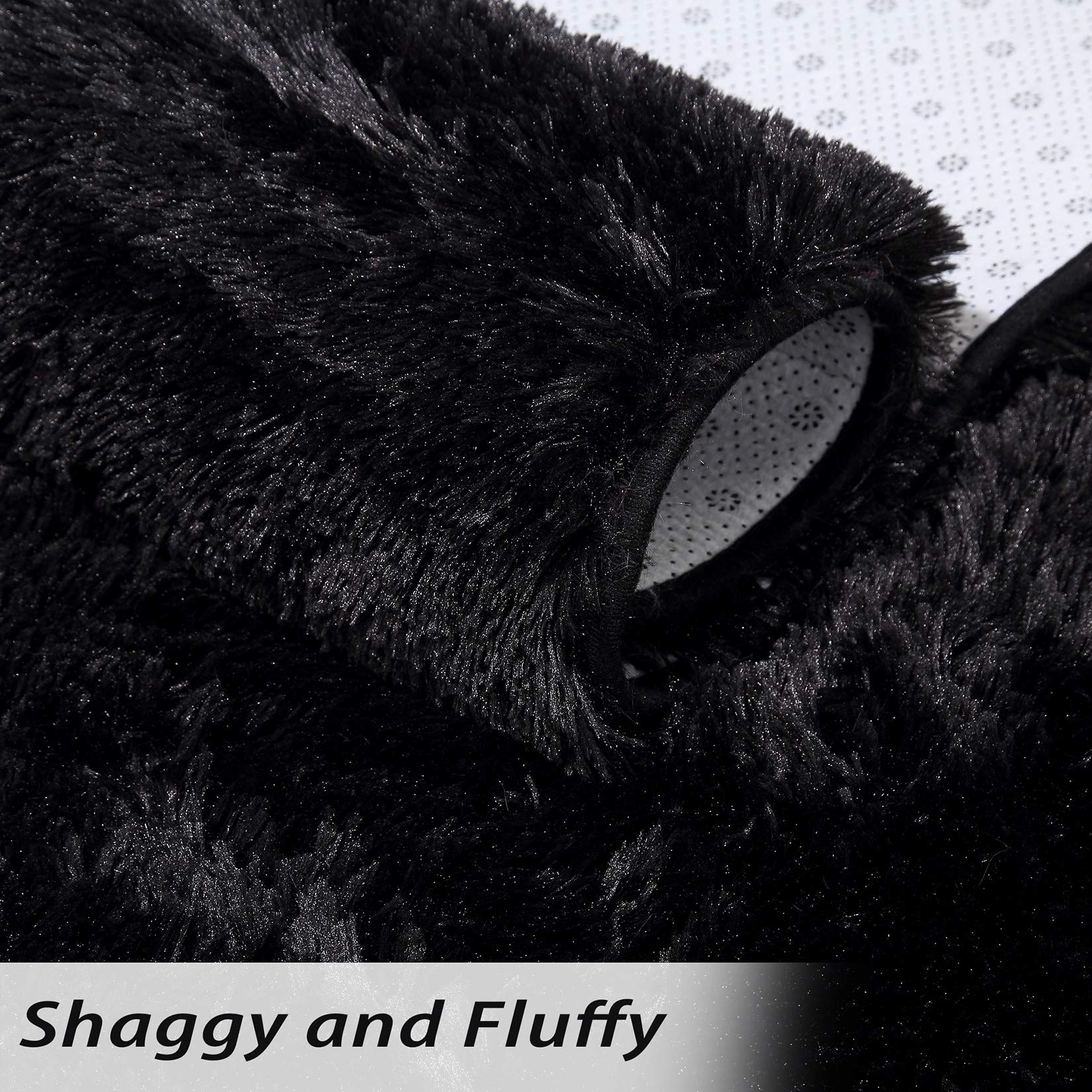 Garvee Fluffy & Sheepskin Pure Black 6x9 Faux Fur Shag Rug, Non-Slip Plush Fuzzy for Bedroom Home Decor Nursery