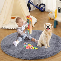 Garvee Fluffy & Sheepskin Pure Grey 4.6-Round Fuzzy Rug, Stain-Resistant Non-Shed Non-Slip for Nursery Bedroom Living Room