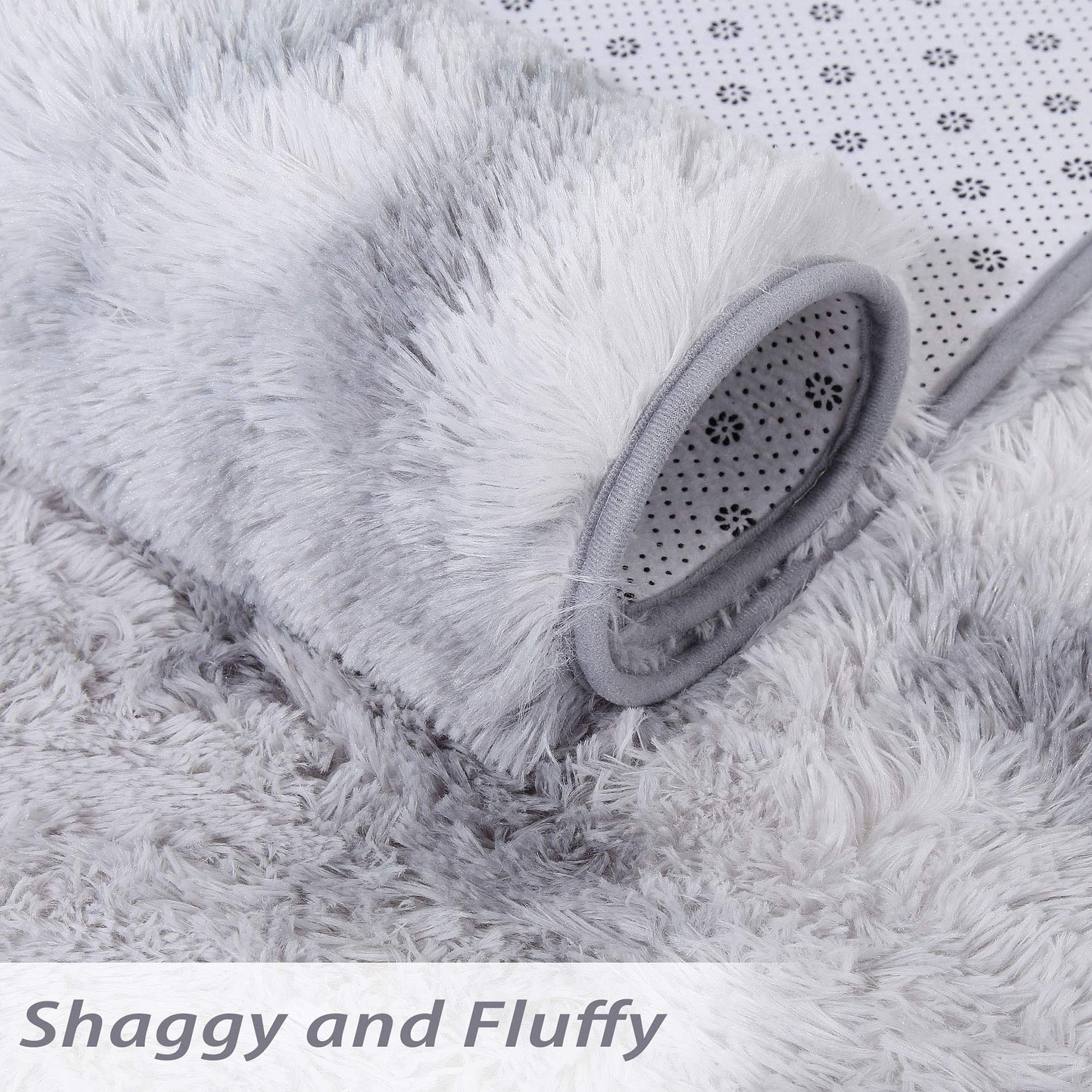 Combined non-slip material back with faux fur surface, the tie-dyed fluffy area rug is harmony with beauty and practicability. It is totally safe to use in any indoor places or heavy traffic areas because of its non-slip back and thick plush surface.The shag area rug is designed with a strong sense of modern aesthetics which fits in many kinds of home decoration. The tie-dyed pattern blends traditional and modern styles to show you a unique feelingOur faux fur tie-dyed area rugs are all made of enhanced synthetic fibers, which are not only ultra-soft and collapsible but resist color fading. Its high-pile front surface allows for convenient placement in living room area, bedroom, kids' room, ect, and is soft to touch. Its thick and high piles will make you feel like stepping out onto a cloud and shields feet from the cold floor.The back of the area rug is covered with thousands of plastic beading dots which can stop the area rug sliding on the floor