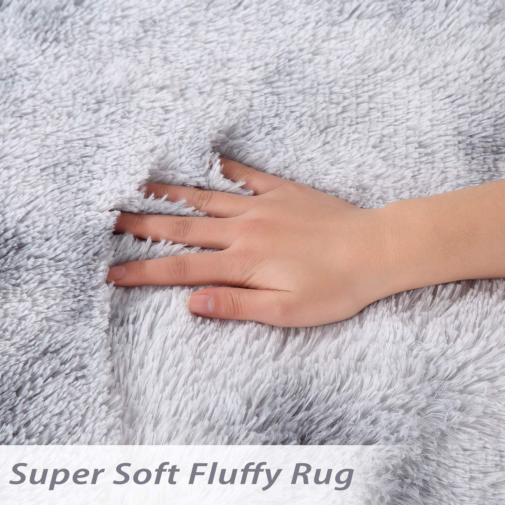 Garvee Fluffy & Sheepskin Light Grey 6x9 Abstract Faux Fur Shag Rug, Non-Slip Plush for Bedroom Home Decor Nursery