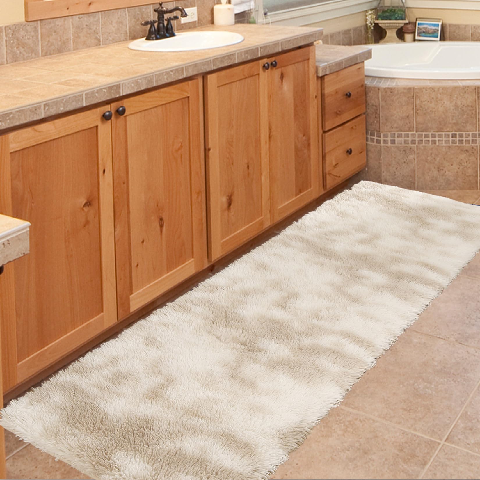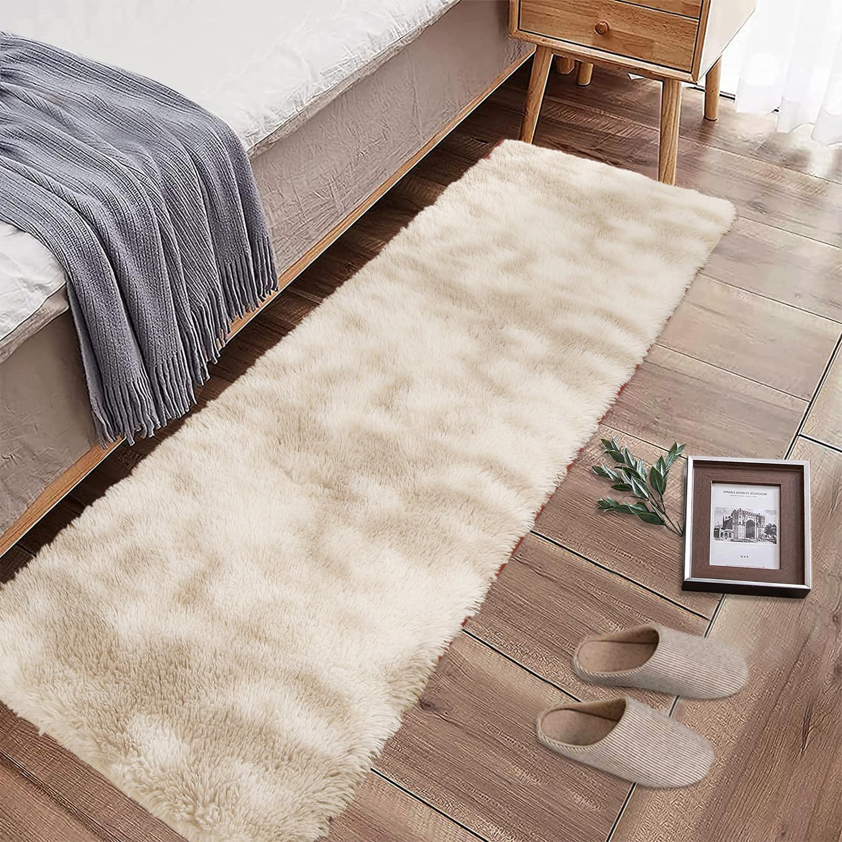 I bought this rug for my bedroom, and it’s so soft and comfortable. The fluffy texture feels amazing, and it’s held up well to daily use. Highly recommend!