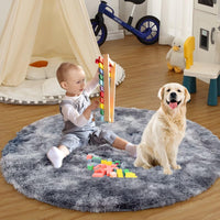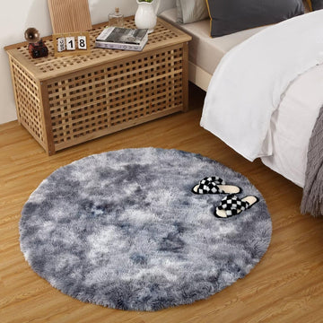 Garvee Fluffy & Sheepskin Dark Grey 4.6'-Round Fuzzy Rug, Ultra Soft Shag Fur for Kids Girls Nursery Living Room Decor