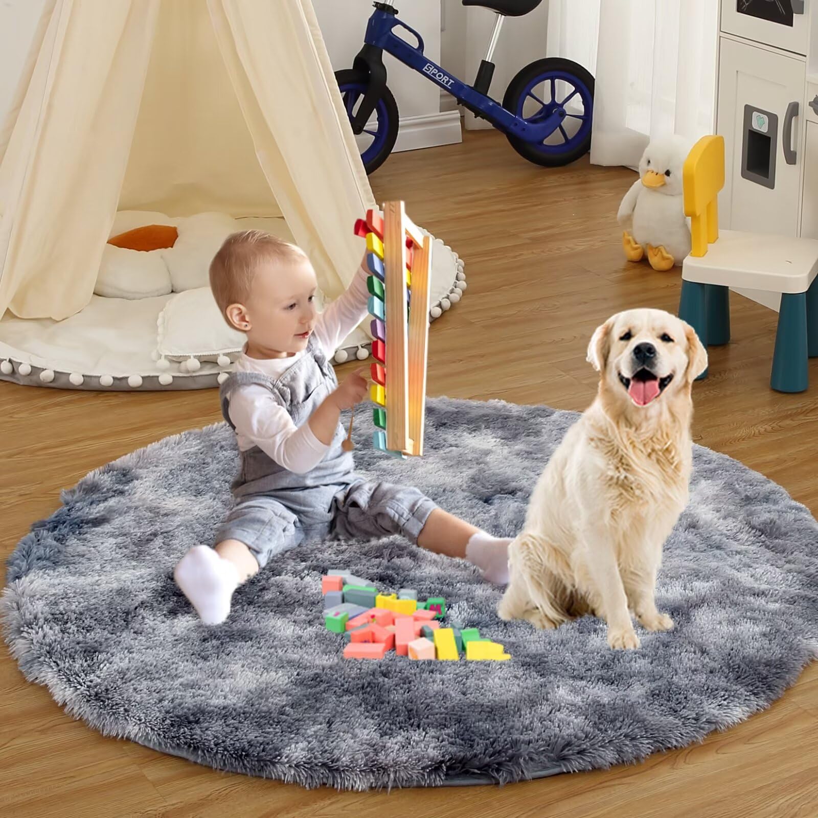 - Easy-clean, non-shedding fluffy rug