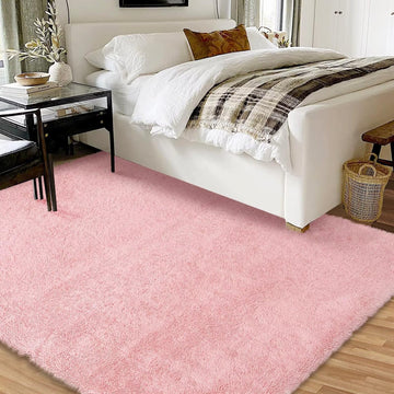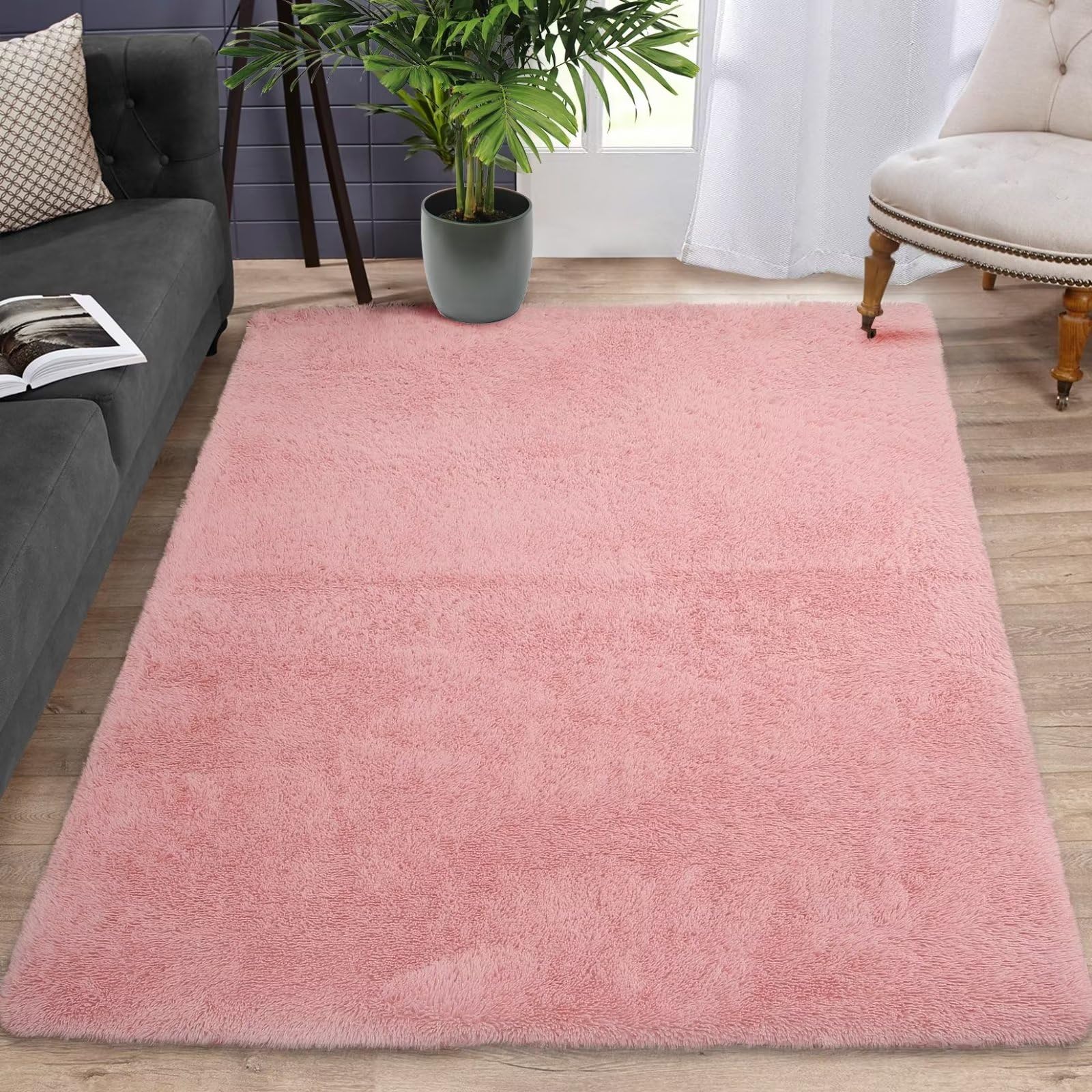 Garvee Fluffy & Sheepskin Light Pink 8x10 Plush Fuzzy Rug, Non-Slip Shaggy for Living Room Bedroom Dining Office