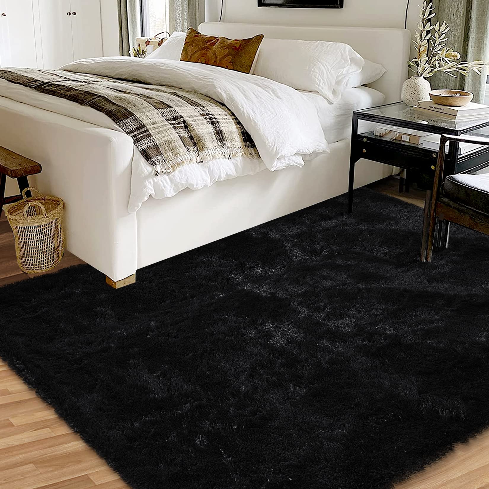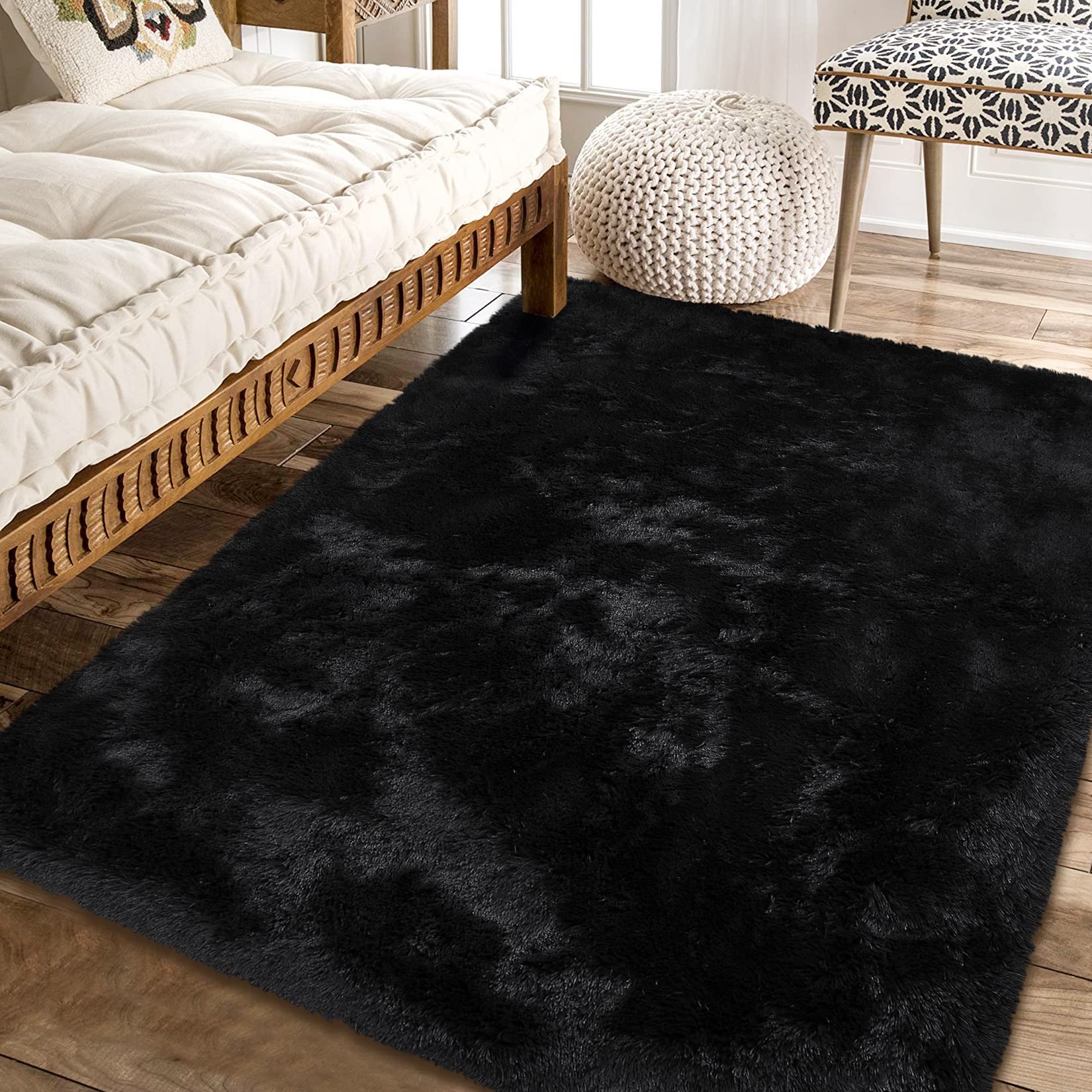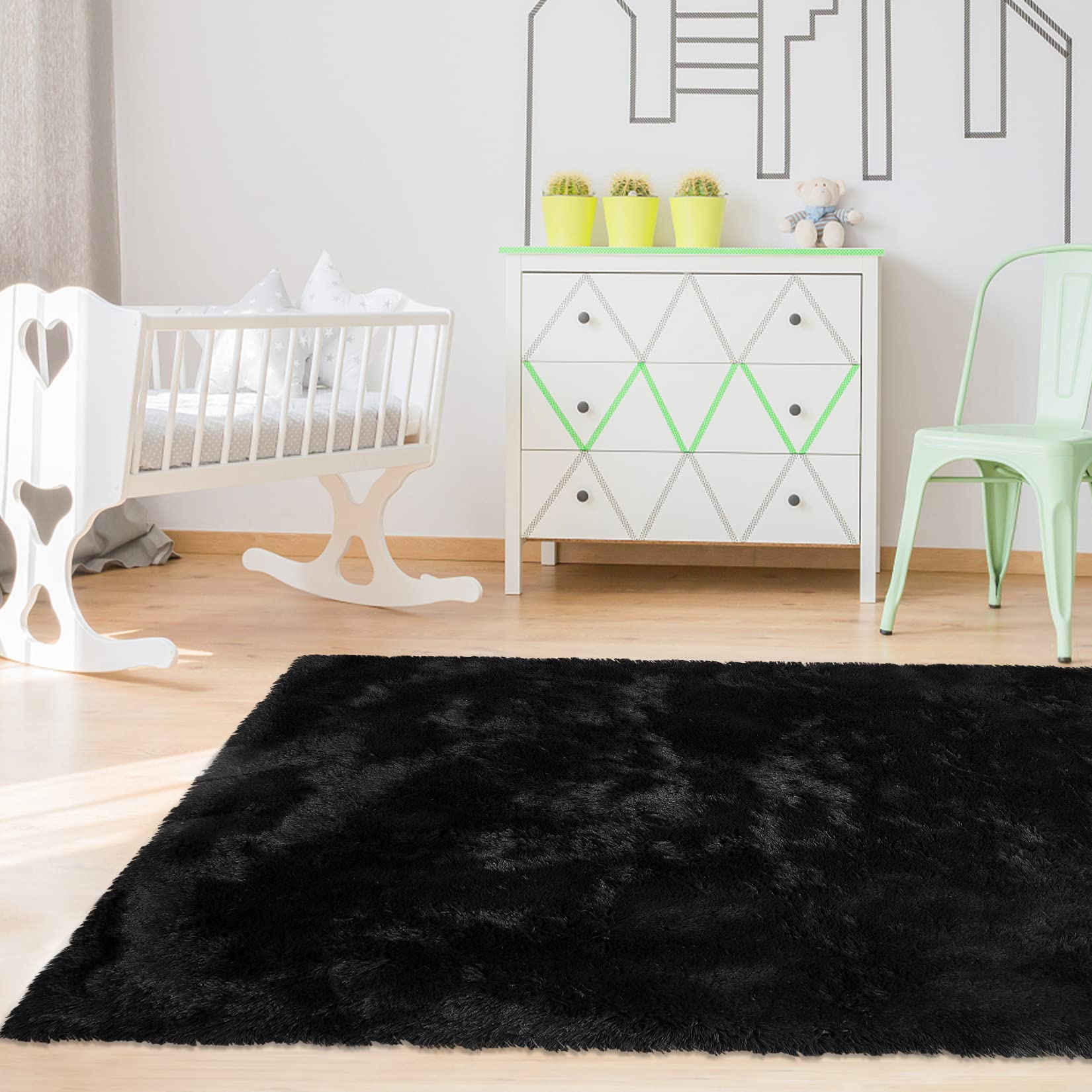 Garvee Fluffy & Sheepskin Pure Black 9x12 Faux Fur Shag Rug, Non-Slip Tie Dye Plush Fuzzy for Bedroom Kids Nursery Dorm