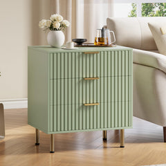 Garvee Fluted Dresser with 3 Drawers, Modern Chest of Drawers with Curved Profile Design, Wood Drawer Organizer for Bedroom, Living Room, Hallway, Natural Oak