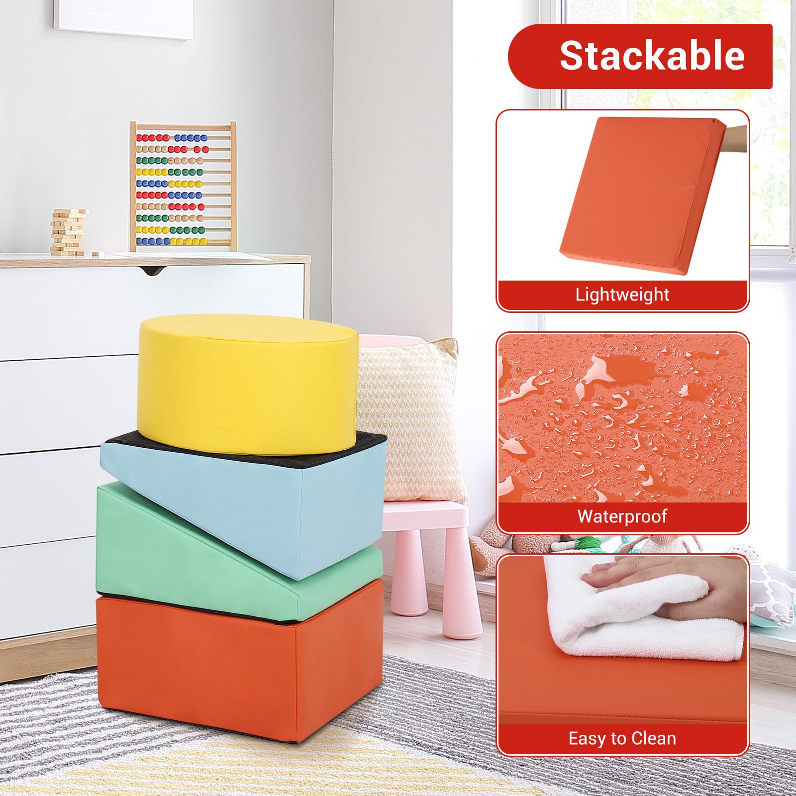 Garvee Foam Climbing Blocks for Toddlers, Waterproof Toddler Climbing Toys, Baby Jungle Gym Indoor Lightweight, Easy to Clean Foam Play Gym 5PCS