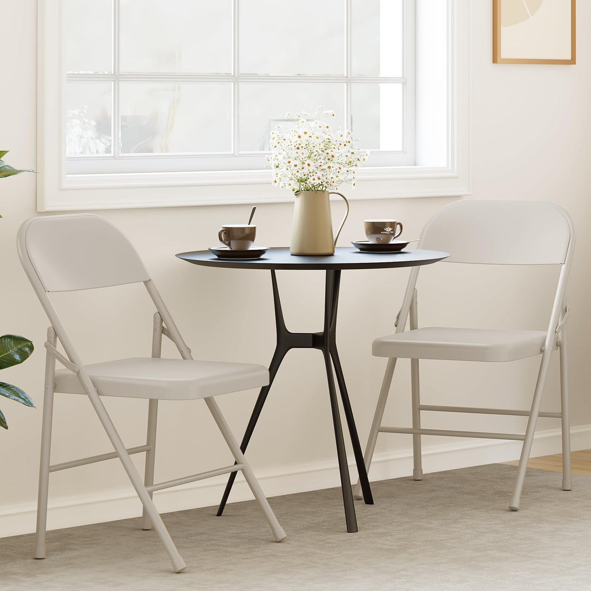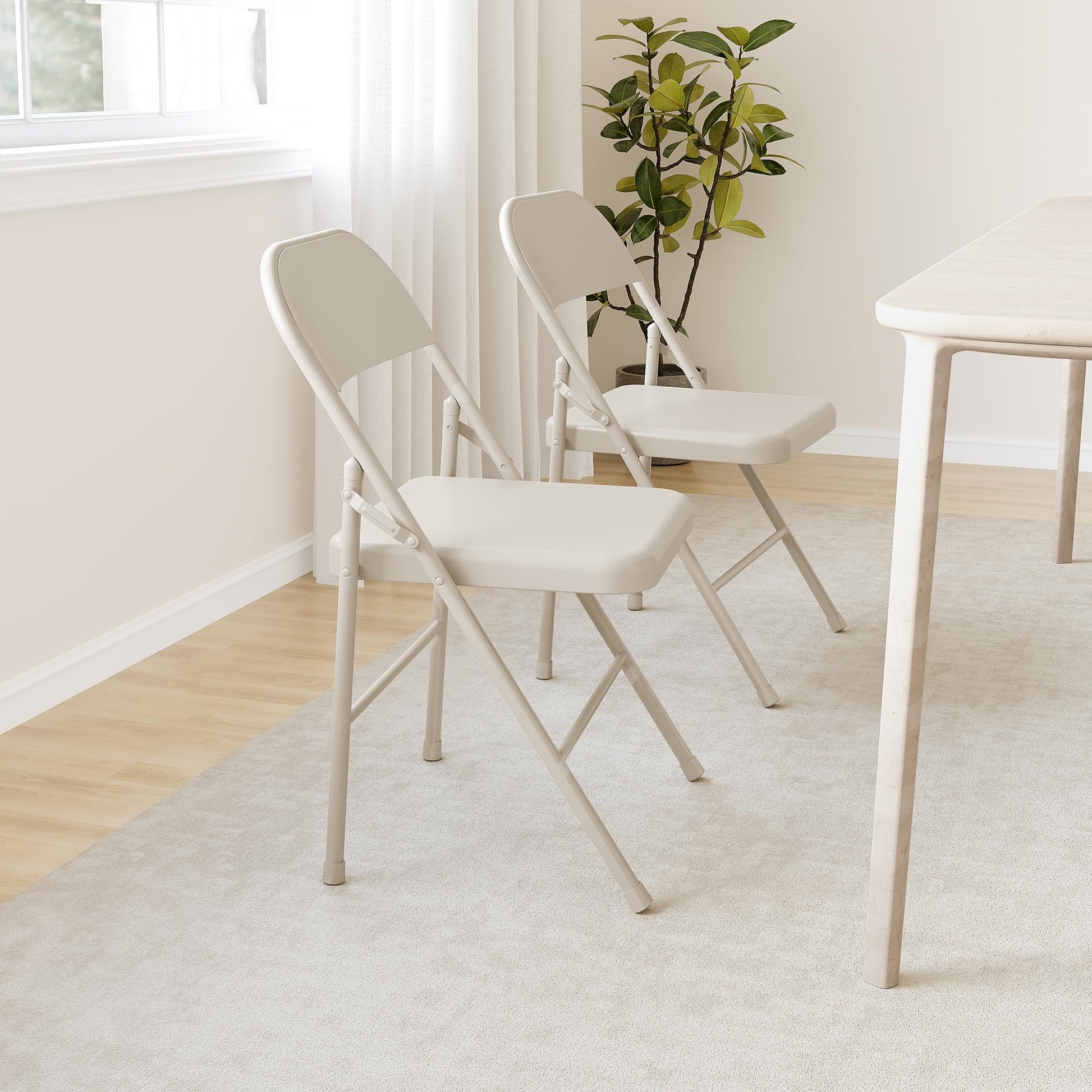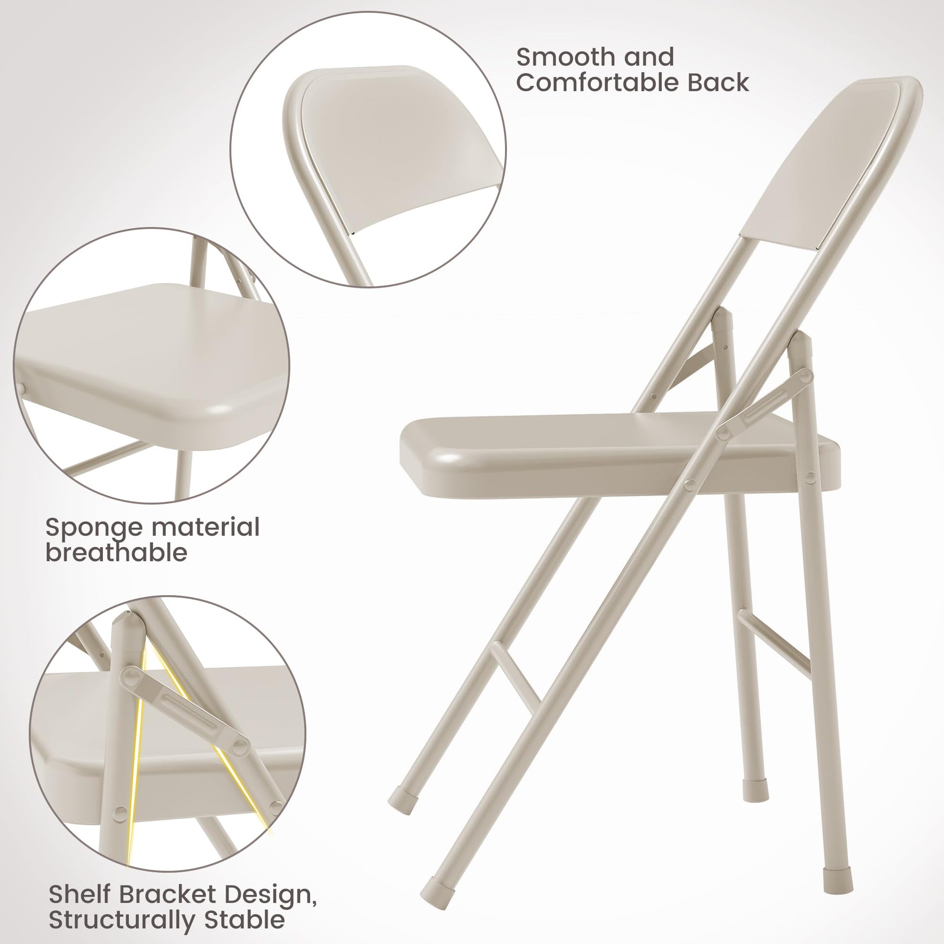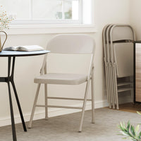Garvee Folding Chairs Set of 4, Foldable Chairs with Metal Frame Hold Up to 350 Pounds, Portable Black Folding Chairs Suitable for Dining Room, Living Room, Office, Camping - Beige