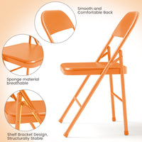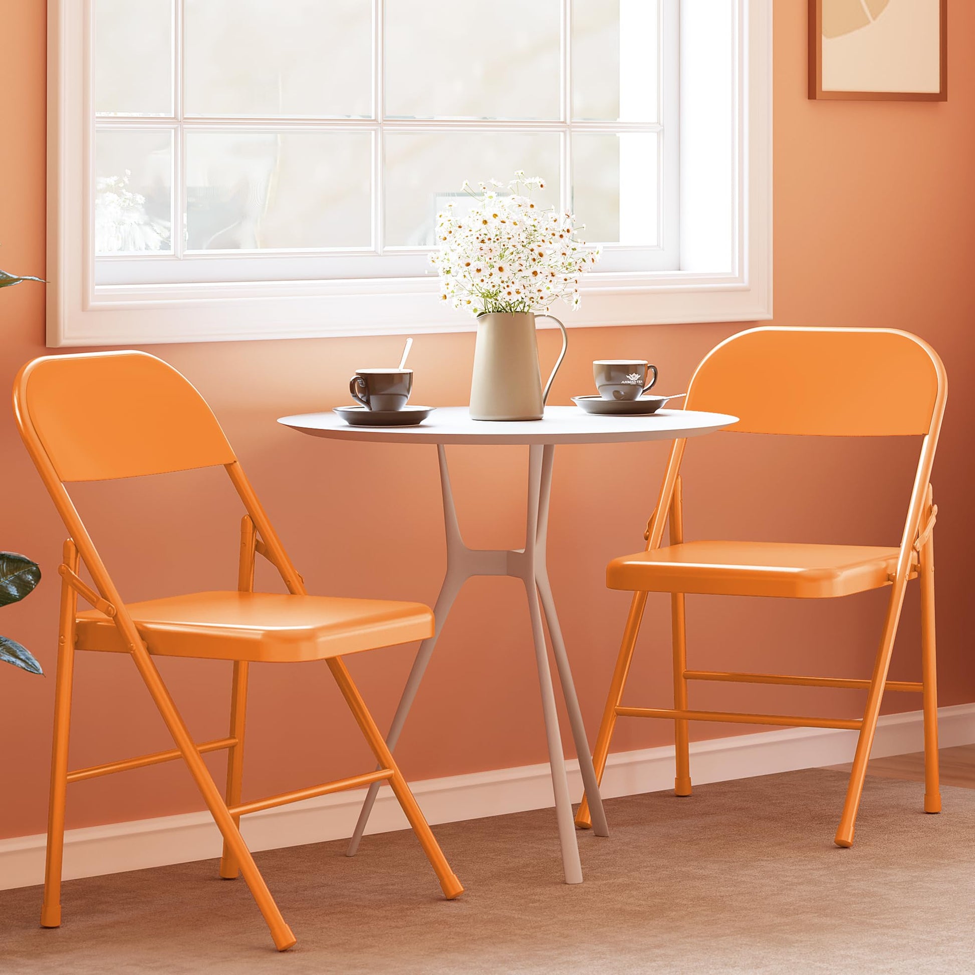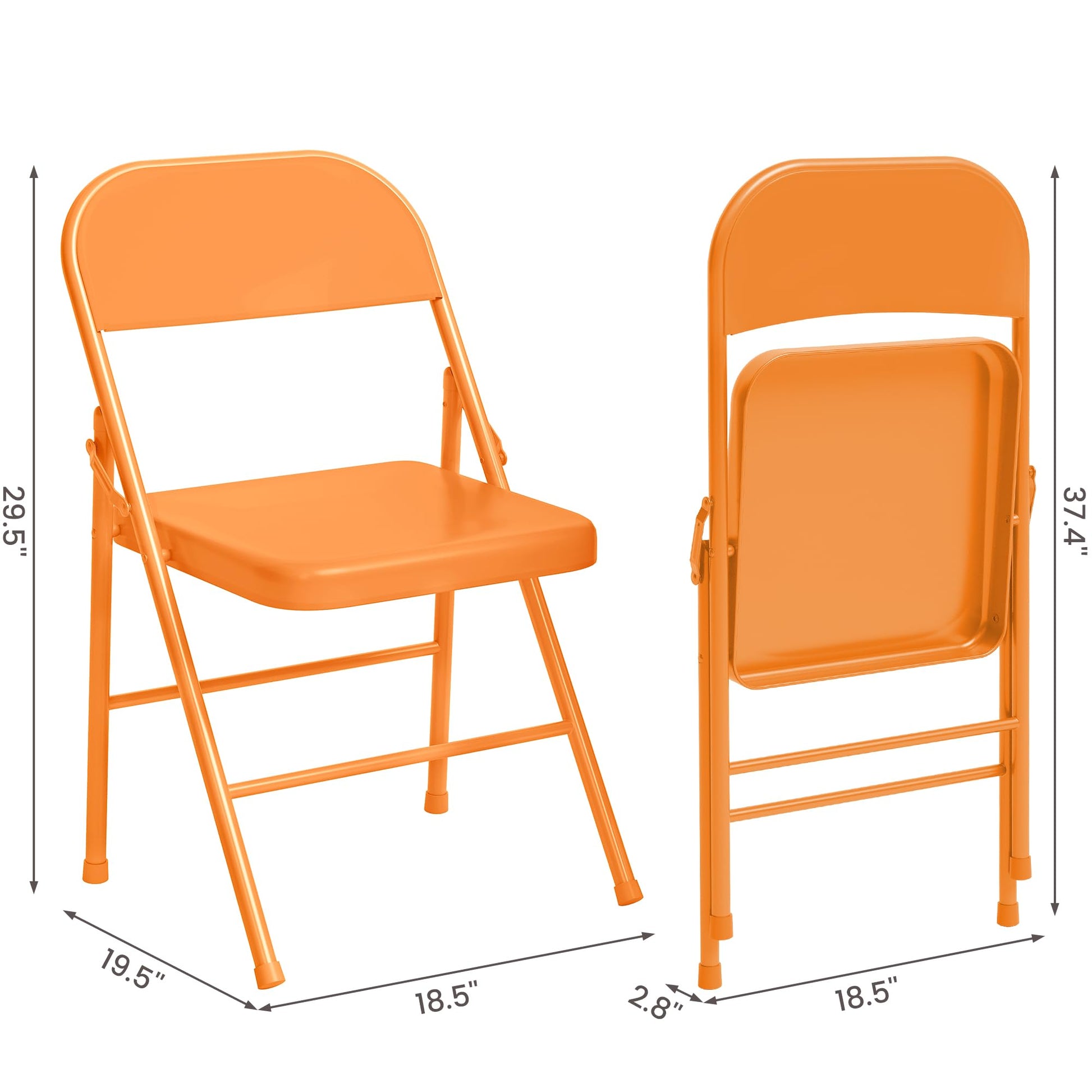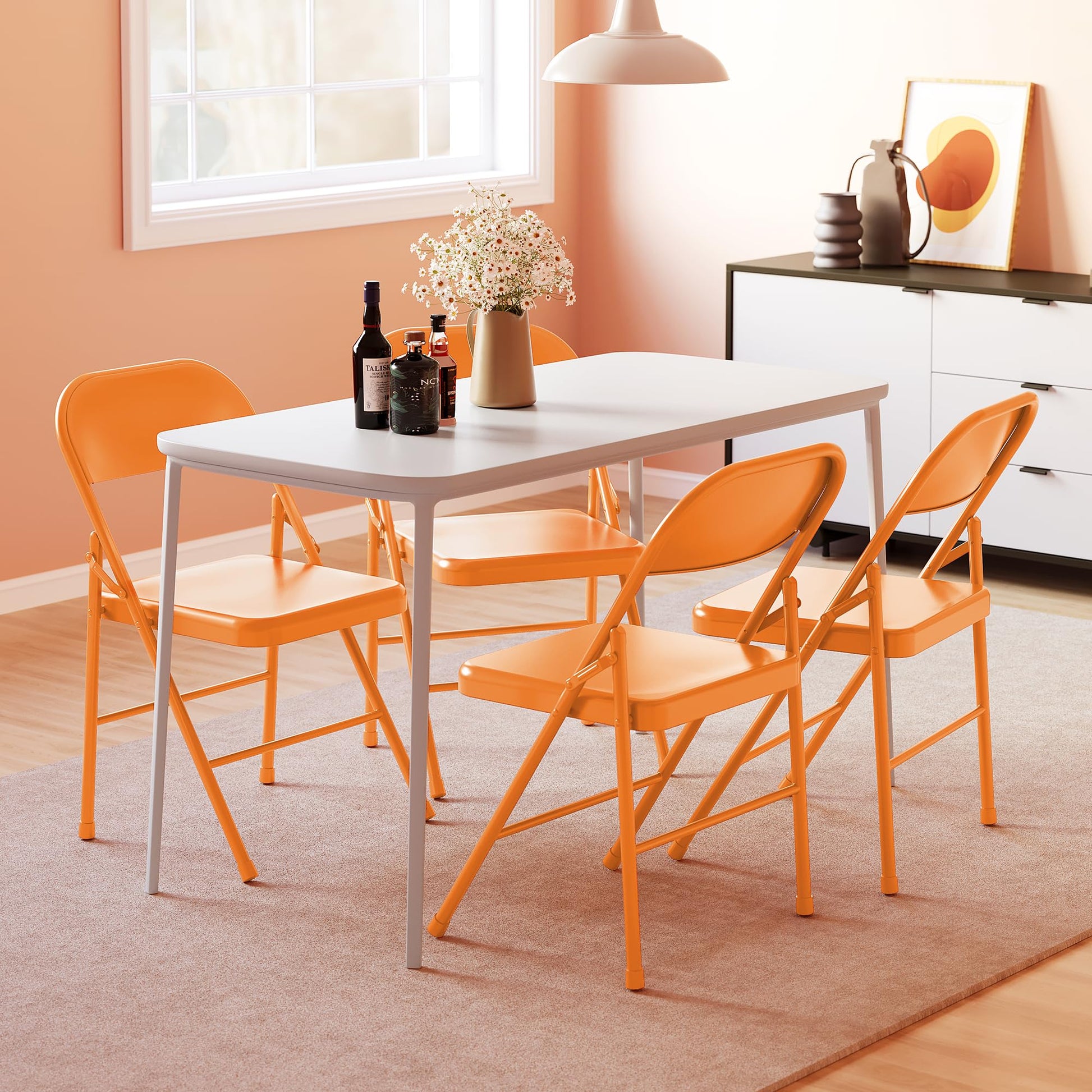Garvee Folding Chairs Set of 4, Foldable Chairs with Metal Frame Hold Up to 350 Pounds, Portable Black Folding Chairs Suitable for Dining Room, Living Room, Office, Camping - Orange