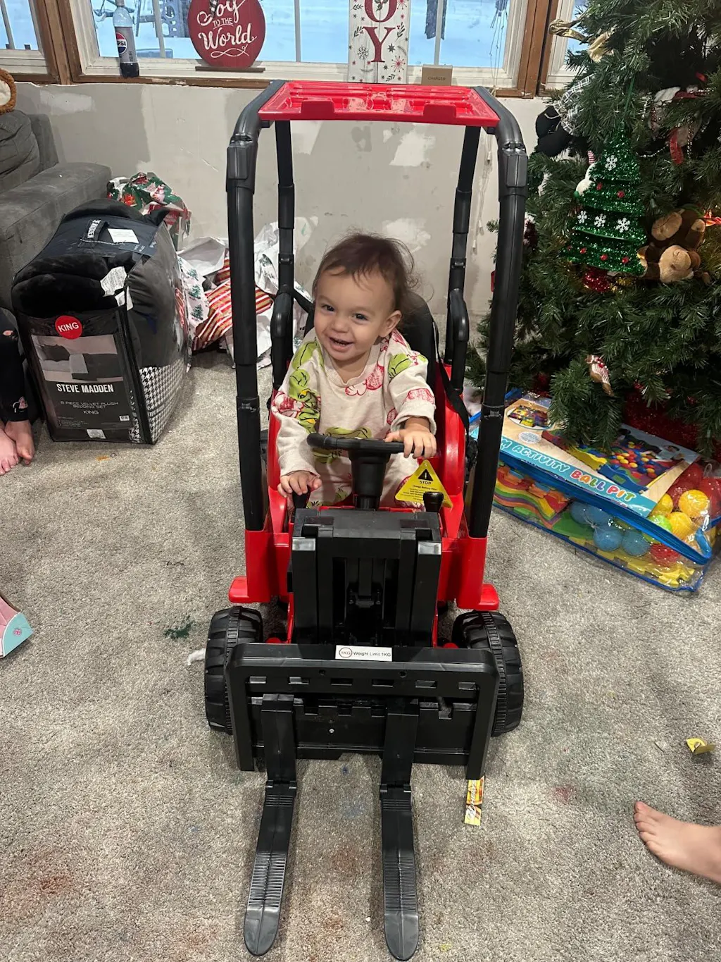 Watch your child's excitement as they operate their very own forklift. Built for fun and learning, this electric ride-on forklift offers: