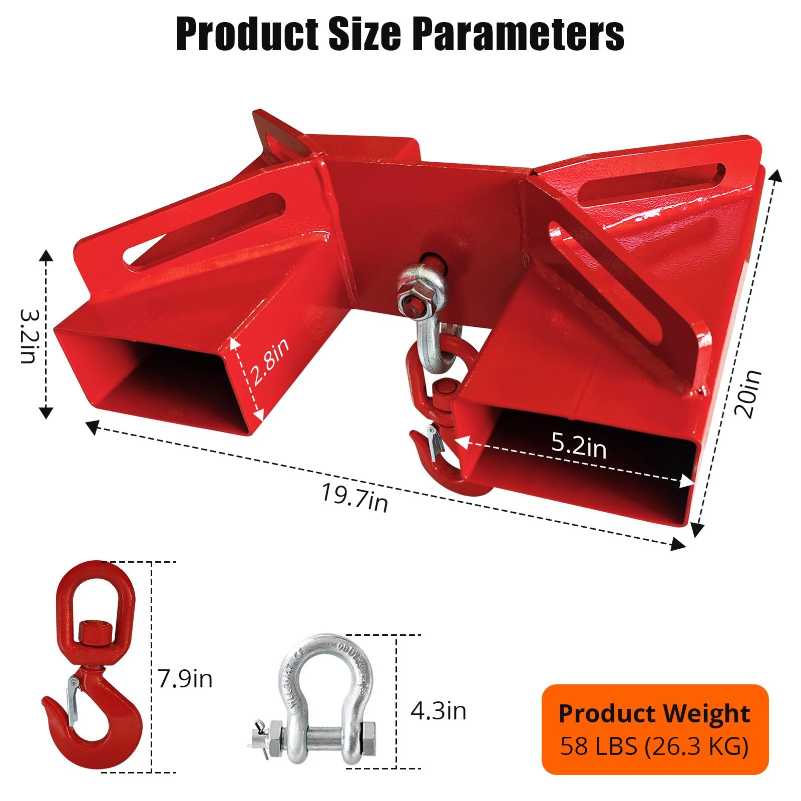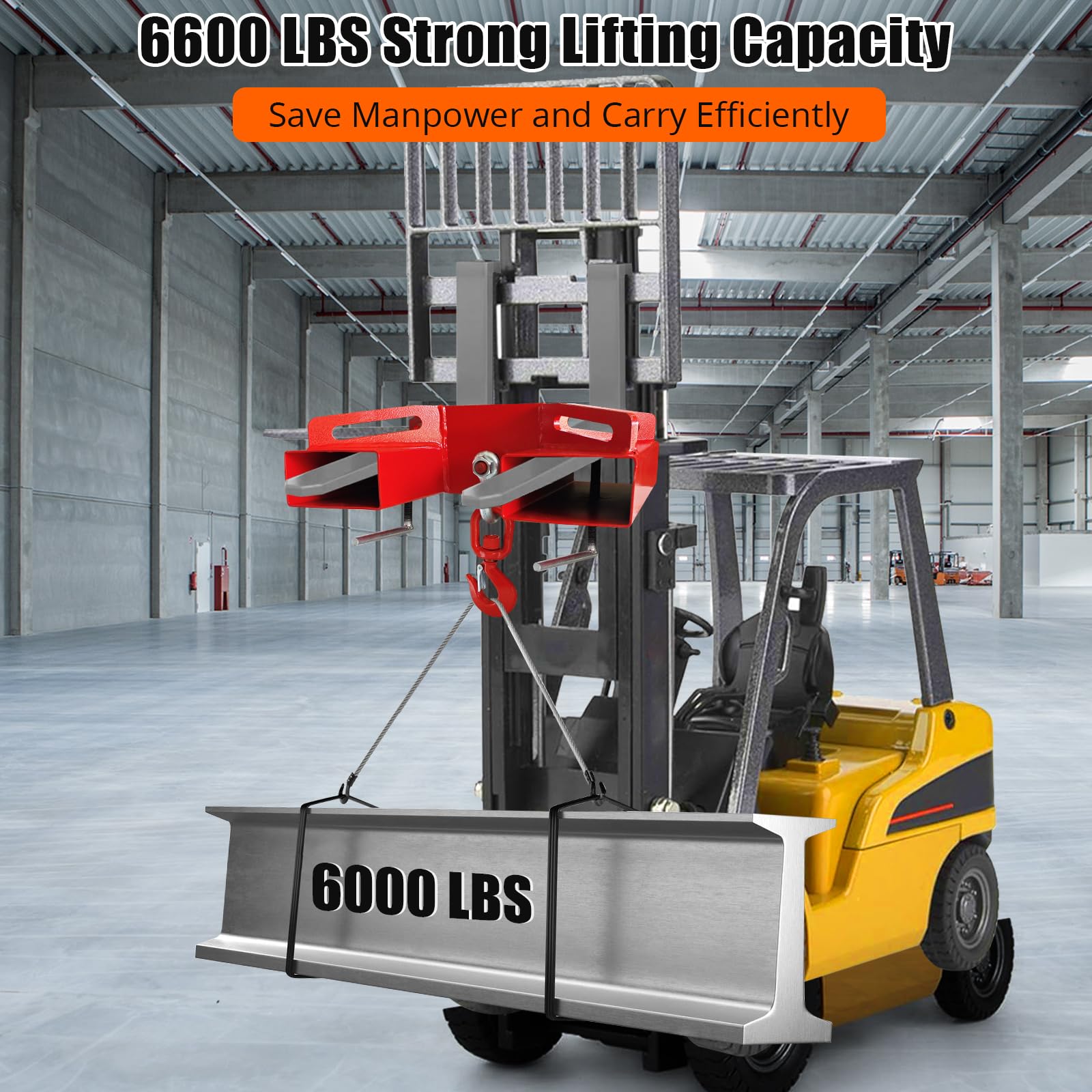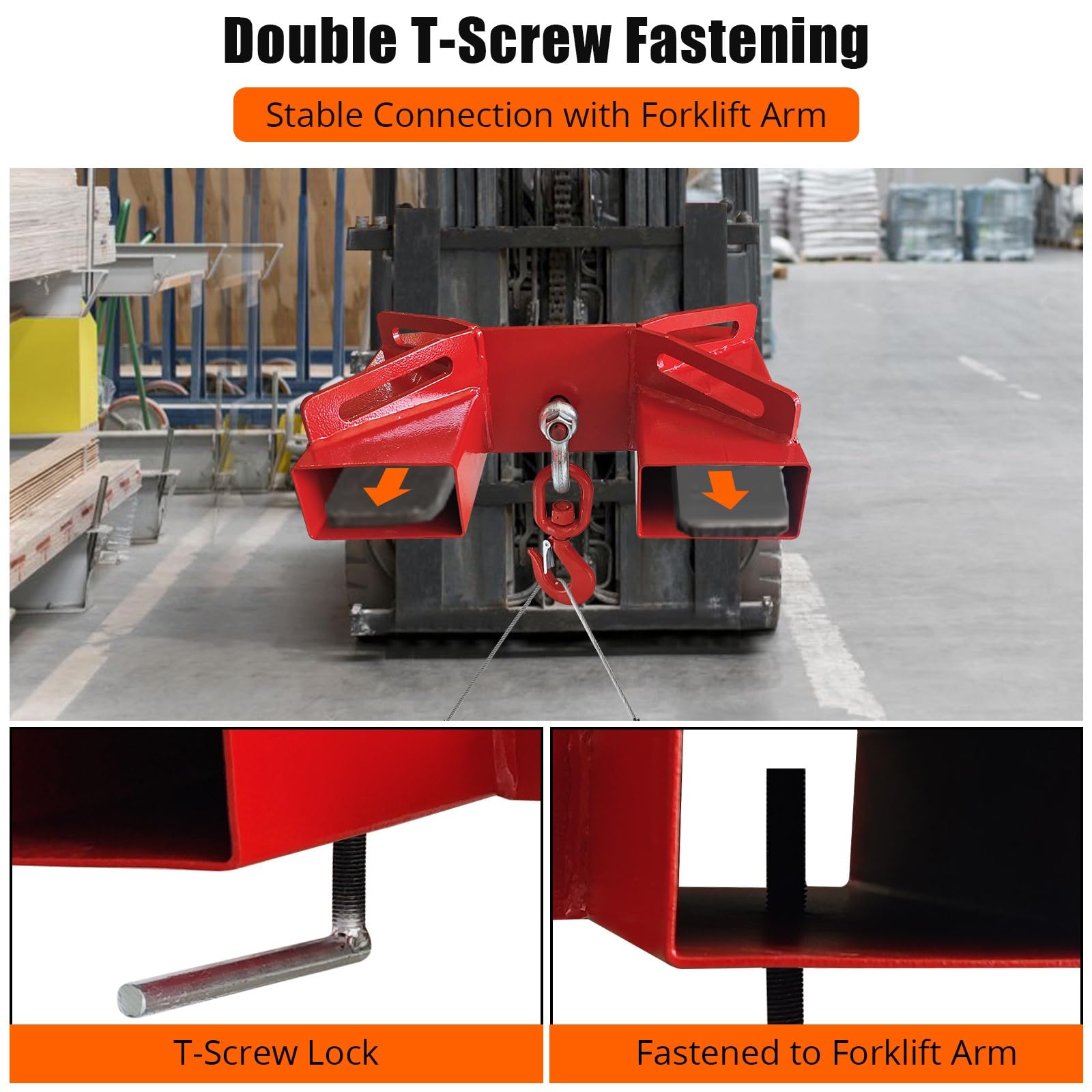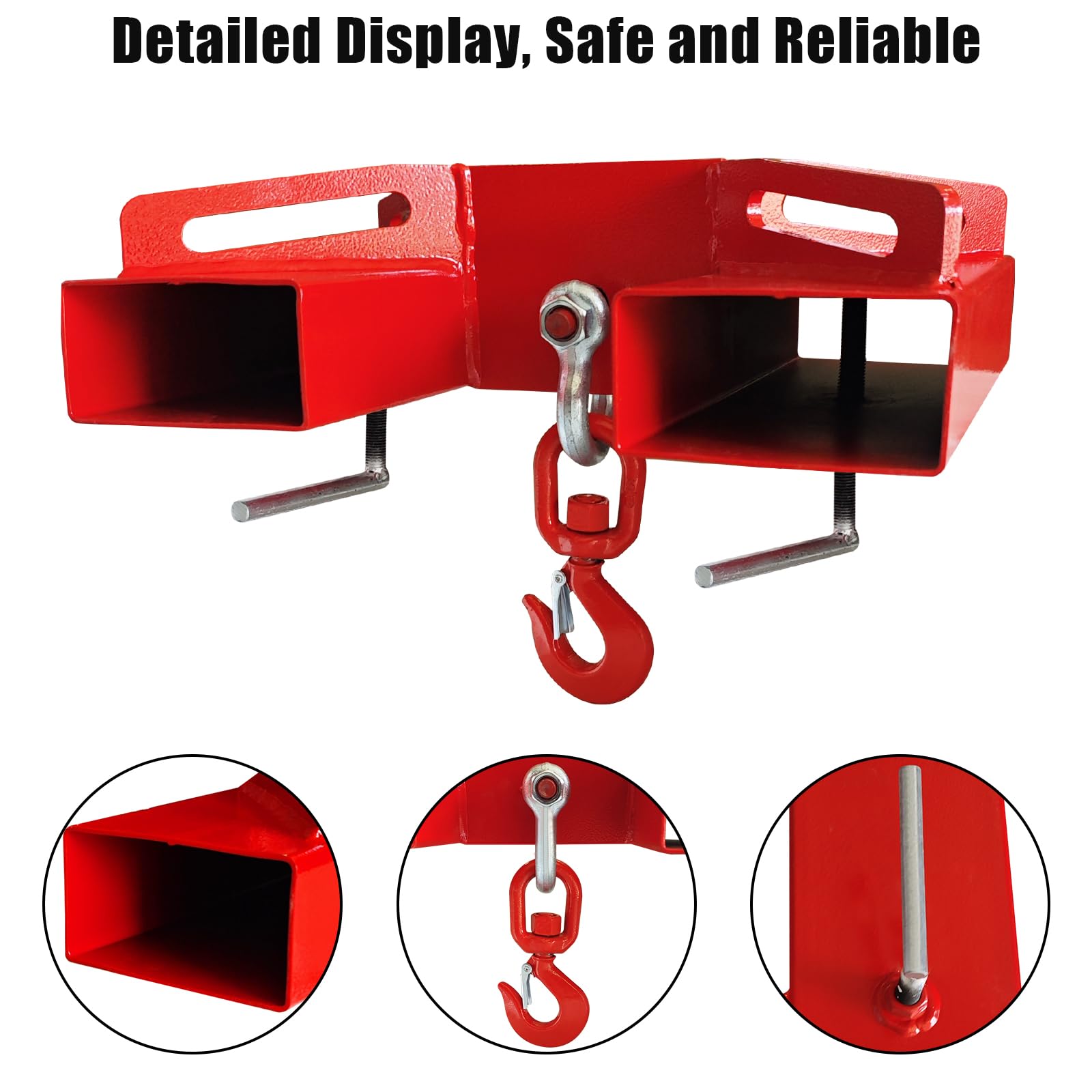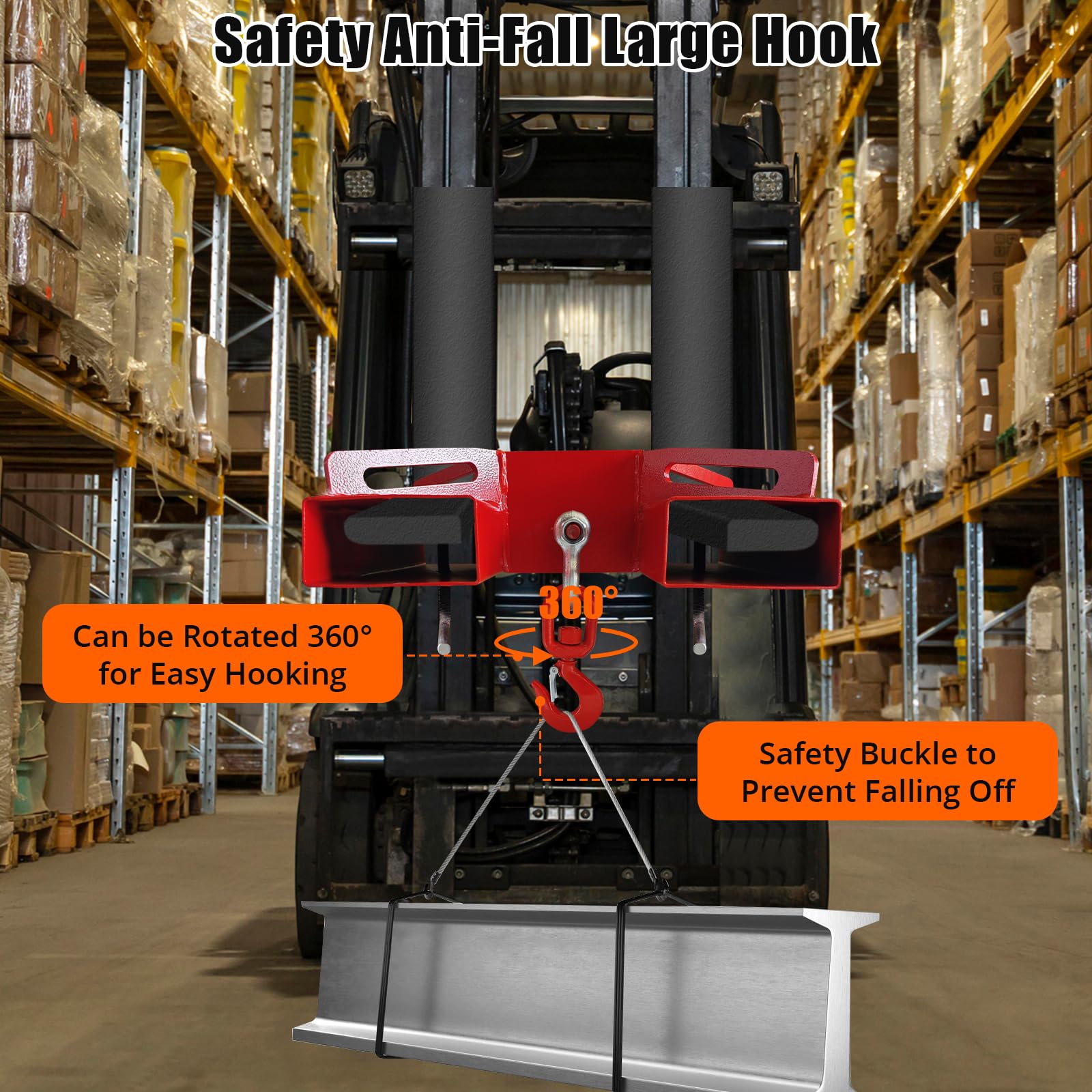 Garvee Forklift Lifting Hook 3T, 6600 LBS Load Capacity Forklift Lifting Hoist with Swivel Hook and 2 Large L-Fixing Bolts Red