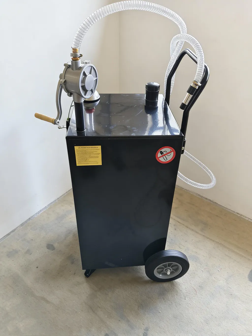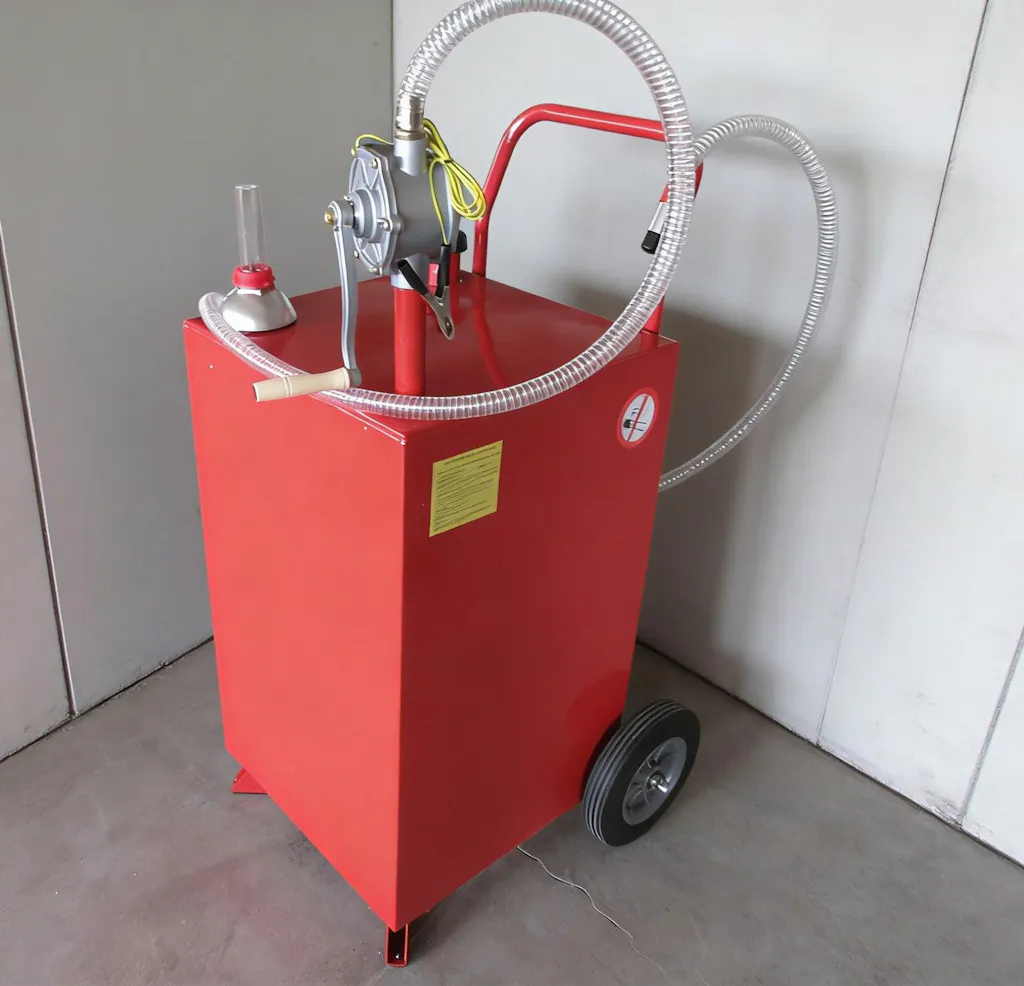 Includes a 9.8-foot automotive-grade rubber hose with a manual nozzle for spill-free refueling, plus a sturdy handle and all-terrain wheels for effortless transport across surfaces.