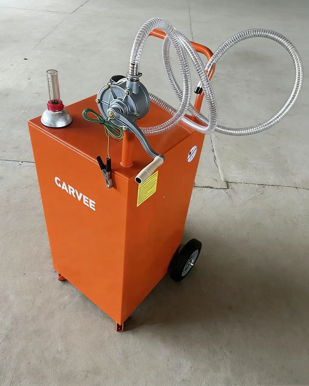 Equipped with a built-in two-way rotary pump that allows quick dispensing or siphoning of fuel by simply reversing the crank, perfect for field use without power.