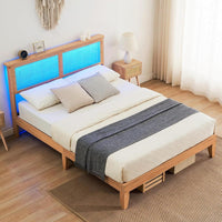 Elevate your bedroom's style with our GARVEE Full Bed Frame, featuring a stunning natural rattan headboard, LED lighting, and robust wooden support legs. This modern bed frame combines aesthetics with practicality, offering a no-box-spring-needed design for easy assembly and maximum comfort.